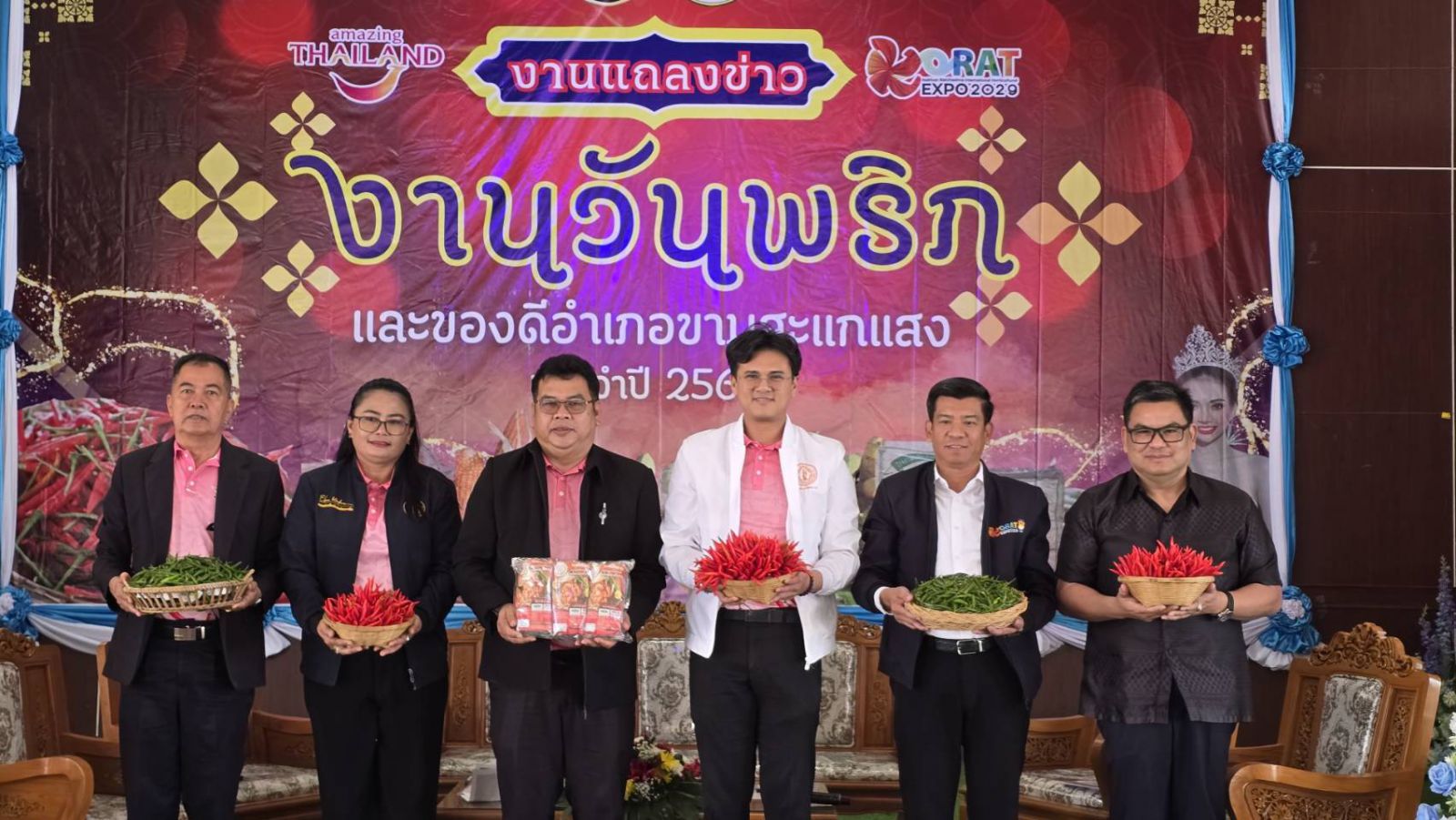 นครราชสีมา-นอภ.ขามสะแกแสง จัดแถลงข่าวงานวันพริก ของดีอำเภอขามสะแกแสง พริกเผ็ดที่สุดในโลก พร้อมประกวดธิดาพริก แข่งขันส้มตำลีลา แข่งขันผัดหมี่