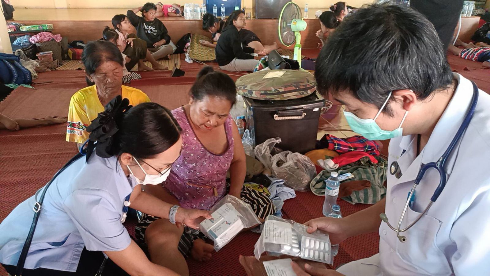 โดยพบว่ามีชาวบ้านและผู้นำท้องถิ่นท้องที่นำสิ่งของข้าวสารอาหารแห้ง พืชผัก น้ำดื่มสะอาดมาบริจาคให้ผู้อพยพตลอดเวลา