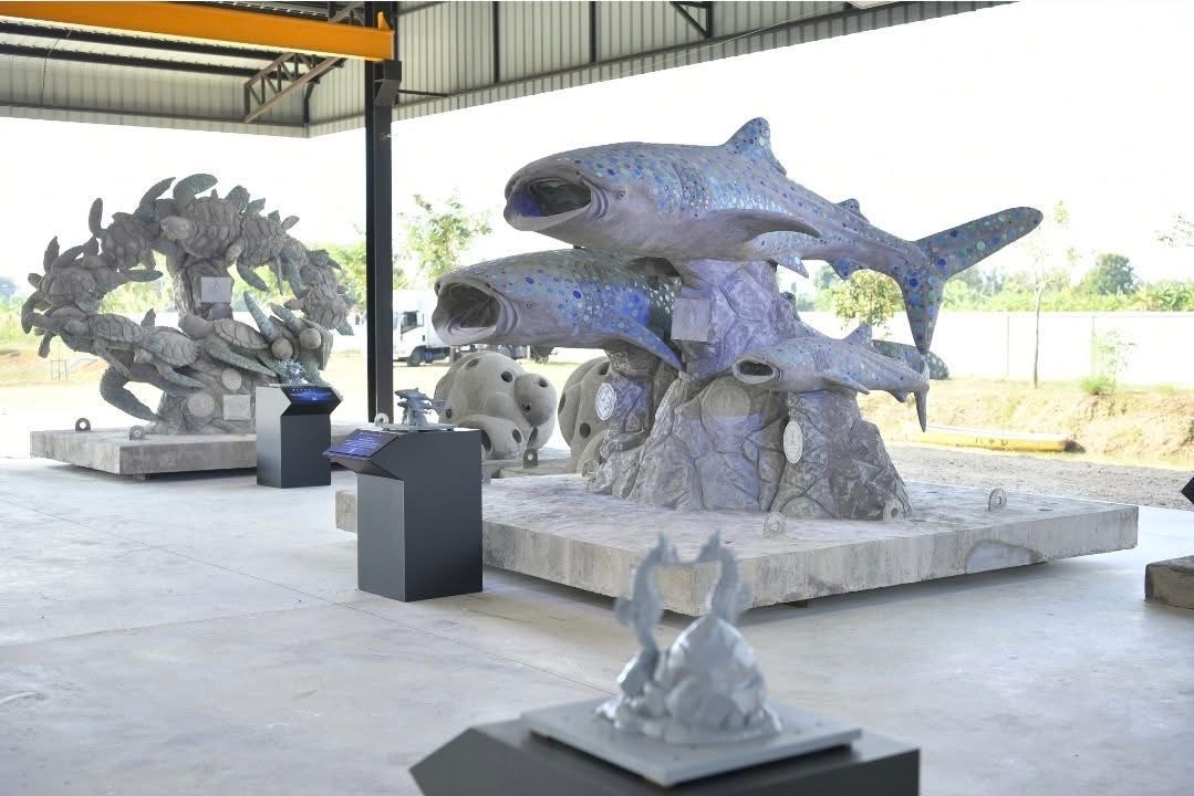 งานประติมากรรมรูปสัตว์น้ำดังกล่าว สร้างจากวัสดุที่ใช้ในการทำปะการังเทียม เป็นมิตรกับสิ่งแวดล้อม มีความสูงเฉลี่ยประมาณ 2.50 เมตร โดยจัดทำขึ้นภายใต้แนวคิด Ocean for Life ประกอบด้วย ประติมากรรมชุดคู่ตนุ ประติมากรรมชุดกระเบนจุดฟ้า ประติมากรรมชุดครอบครัวเต่า ประติมากรรมชุดม้าน้ำ ประติมากรรมชุดฉลามวาฬ ประติมากรรมกระเบนนก ประติมากรรมซุ้มเต่า ประติมากรรมชุดฉลามหูดำ และประติมากรรมชุดโรนัน นอกจากประติมากรรมสัตว์น้ำทั้ง 9 ชิ้นแล้ว ยังมีปะการังเทียมรูปแบบใหม่ (Coral ball) จำนวน 4 ชิ้น และปะการังเทียมรูปแบบโดม จำนวน 80 ชิ้น ซึ่งทั้งหมดจะถูกนำไปจัดวางเป็นรูปแบบของลานประติมากรรมใต้ทะเล บริเวณเกาะเต่า ประมาณเดือนมีนาคม - เมษายน 2569 โดยได้มีการสำรวจพื้นที่ใต้ทะเลอย่างละเอียดจากผู้เชี่ยวชาญ เพื่อให้มั่นใจว่า การจัดวางเป็นไปอย่างเหมาะสมและปลอดภัยต่อสิ่งแวดล้อม