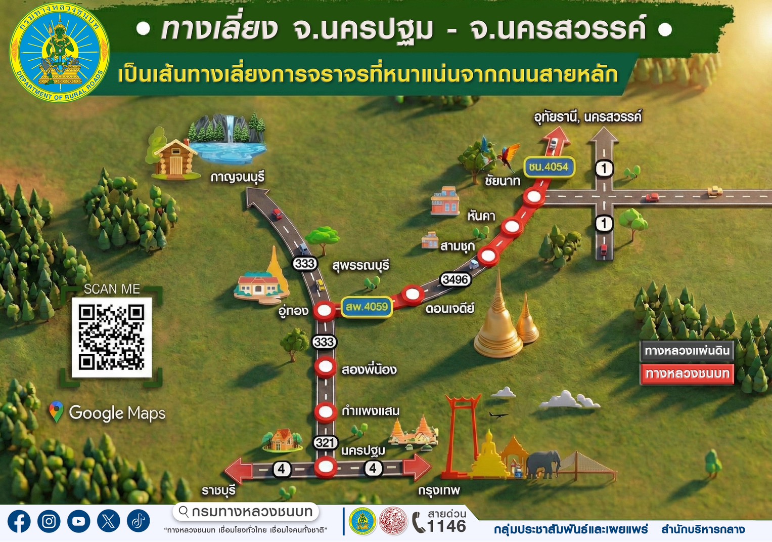 กรุงเทพฯ-กรมทางหลวงชนบท แนะนำ 7 เส้นทางเลี่ยงช่วงเทศกาลปีใหม่ 2569 เพื่อบรรเทาการจราจรบนถนนสายหลัก พร้อมอำนวยความสะดวกในการเดินทางให้ประชาชนถึงที่หมายได้อย่างสะดวก รวดเร็ว และปลอดภัย
