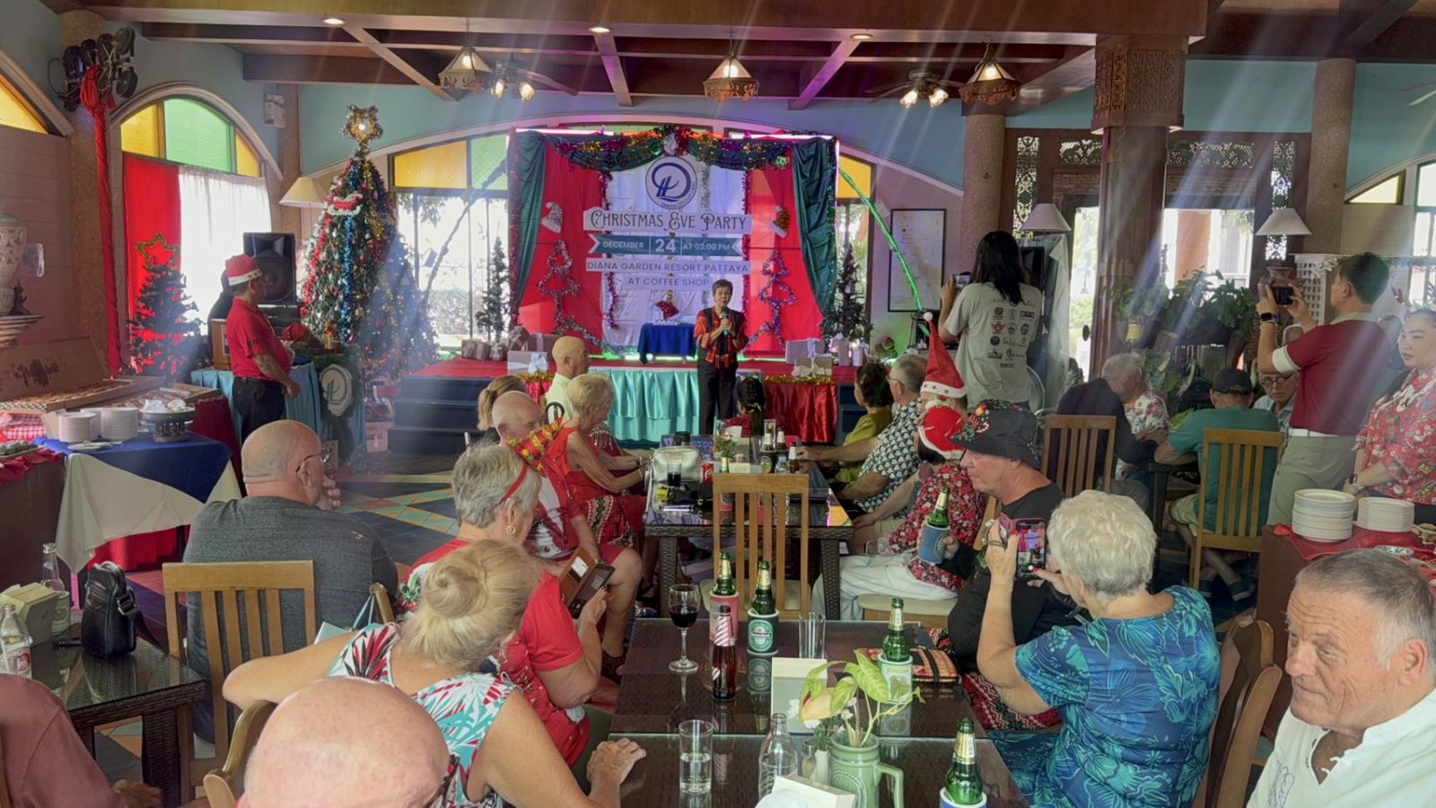 ชลบุรี-วันที่ 24 ธ.ค.68 โรงแรมไดอาน่าการ์เด้นรีสอร์ท พัทยา โดย นางโสภิญ เทพจักร์ กรรมการผู้จัดการ ไดอาน่าการ์เด้นรีสอร์ท พัทยา ได้จัดกิจกรรมเลี้ยงอาหารเพื่อขอบคุณลูกค้า เนื่องในเทศกาลคริสต์มาส 2025 และส่งท้ายปีเก่าต้อนรับปีใหม่ 2026 ภายใต้ชื่อกิจกรรม Christmas Eve Party Diana Garden Resort Pattaya