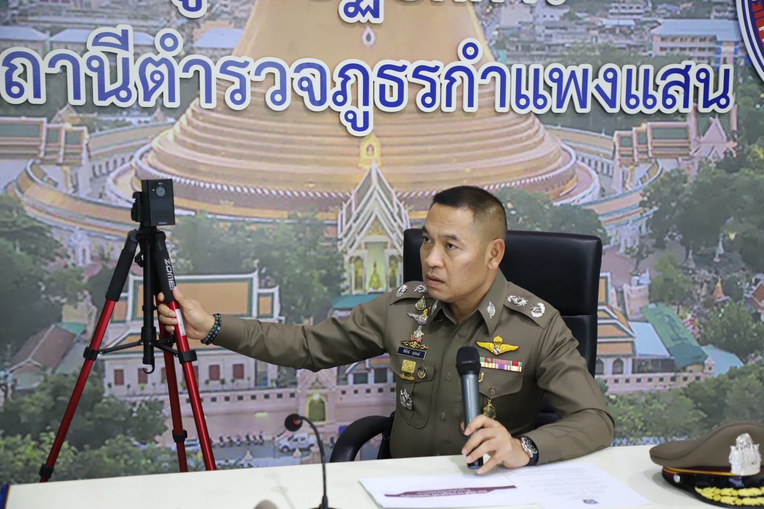วันนี้ 1 มกราคม 2569 ที่ห้องประชุมชั้น 2 สภ.กำแพงแสน พล.ต.ต.พิทักษ์ อุปพงษ์ ผบก.ภ.จว.นครปฐม เดินทางลงพื้นที่สภ.กำแพงแสน เรียกเจ้าหน้าที่ที่เกี่ยวข้องร่วมประชุมตรวจสอบข้อเท็จจริงกรณีเหตุการณ์ที่มีบุคคลถ่ายทอดวีดีโอเผยแพร่ภาพในสื่อโซเชี่ยลมีเดียและแจ้งความดำเนินคดีเจ้าหน้าที่ตำรวจจราจรที่ปฏิบัติหน้าที่ บริเวณจุดตรวจกวดขันวินัยจราจร หน้า สภ.กำแพงแสน เมื่อวันที่ 30 ธันวาคม 2568 เพื่อพิจารณาข้อเท็จจริง ตลอดจนกำหนดแนวทางการปฏิบัติให้เป็นไปด้วยความเรียบร้อย ถูกต้อง เป็นธรรมตามกฏหมายและระเบียบที่เกี่ยวข้องพร้อมตรวจเยี่ยมข้าราชการตํารวจ สภ.กำแพงแสน ที่ปฏิบัติหน้าที่งานจราจร และมอบสิ่งของให้กับ ร.ต.ต.พิเชษฐ์ กลิ่นบุปผา รอง สวป.(ป.) สภ.กำแพงแสน เพื่อเป็นขวัญกำลังใจในการปฏิบัติหน้าที่