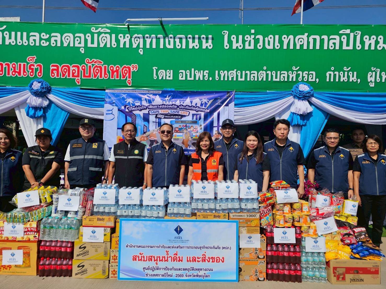 จากนั้นได้ลงพื้นที่ตรวจเยี่ยมการปฏิบัติงานของศูนย์ปฏิบัติการร่วมป้องกันและลดอุบัติเหตุทางถนน ณ จุดตรวจร่วมและจุดบริการร่วม เพื่อติดตามสถานการณ์และสนับสนุนข้อมูลด้านการประกันภัย พร้อมทั้งร่วมรณรงค์ป้องกันและลดอุบัติเหตุทางถนนช่วงเทศกาลปีใหม่ กับศูนย์ปฏิบัติการร่วมป้องกันและลดอุบัติเหตุทางถนนที่จังหวัดจัดตั้งขึ้น โดยเน้นย้ำการรณรงค์ “ขับขี่ปลอดภัย ลดความเร็ว ลดอุบัติเหตุ” ควบคู่กับการประชาสัมพันธ์กรมธรรม์ประกันภัยกลุ่ม “ปีใหม่เที่ยวได้อุ่นใจ” และกรมธรรม์ประกันอัคคีภัยสำหรับที่อยู่อาศัย “ปีใหม่สุขใจ ฝากบ้านไว้กับประกันภัย” ซึ่งเป็นกรมธรรม์ประกันภัยเพื่อรายย่อย (ไมโครอินชัวรันส์) เพื่อสร้างความมั่นใจให้แก่ประชาชนที่เดินทางในช่วงเทศกาลปีใหม่ พร้อมมอบสิ่งของอุปโภคบริโภคที่จำเป็นเพื่อเป็นขวัญกำลังใจแก่เจ้าหน้าที่ผู้ปฏิบัติงานประจำจุดตรวจและจุดบริการประชาชนในพื้นที่ โดยมีนางสาวสรินรัตน์ เกิดสกุลรุ่งโรจน์ รองผู้ว่าราชการจังหวัดพิษณุโลก เป็นผู้แทนรับมอบสิ่งของ