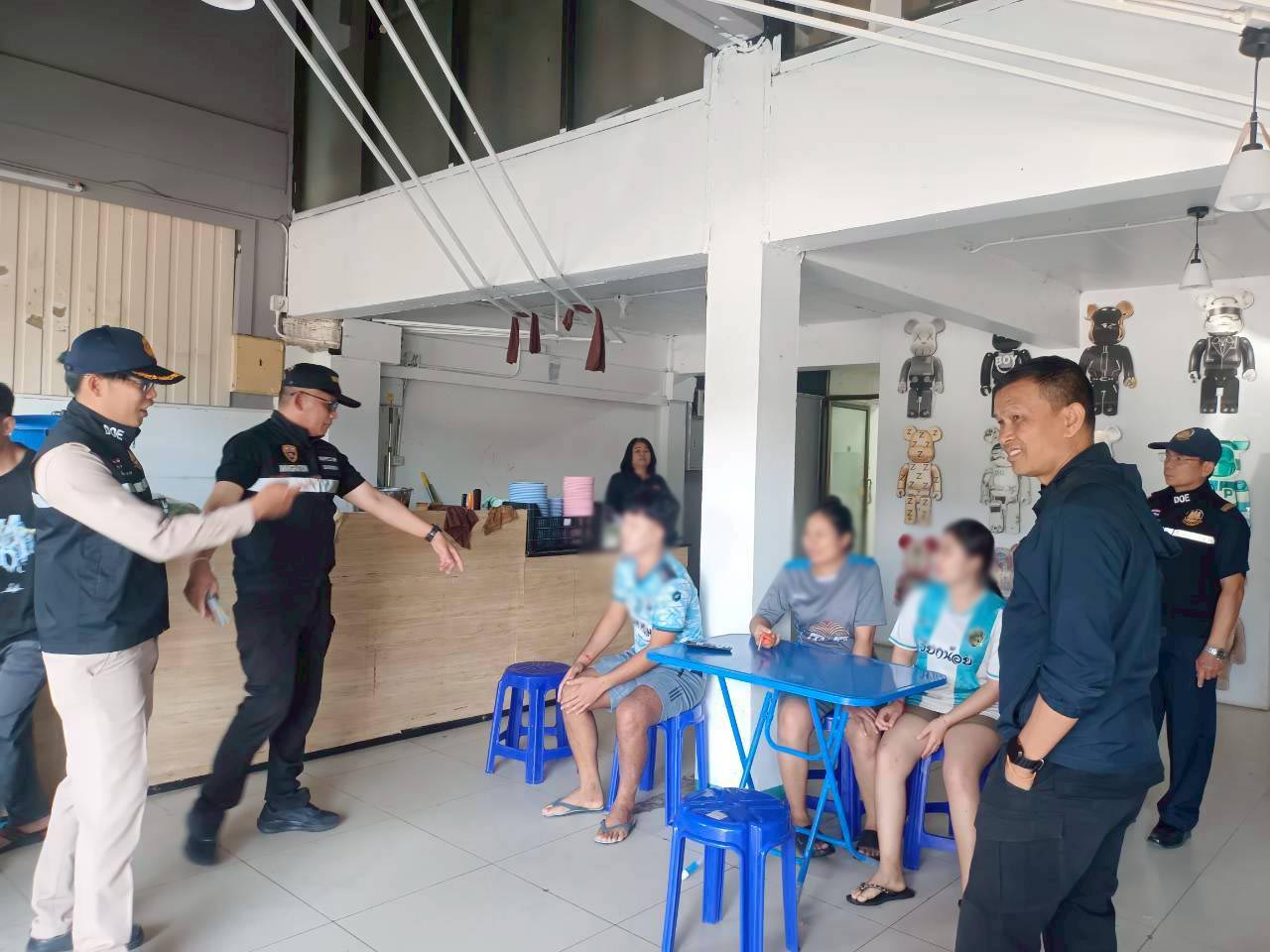 พบคนต่างชาติ ชาวลาว จำนวน 5 คน กำลังขายของหน้าร้าน ตรวจสอบเบื้องต้นเข้ามาด้วยวีซ่าประเภทนักท่องเที่ยว แต่กลับมาแฝงตัวเป็นคนงานขายของ ตรวจสอบในระบบสารสนเทศของสำนักงานตรวจคนเข้าเมือง พบว่า คนต่างด้าวได้รับอนุญาตให้อยู่ในราชอาณาจักรด้วยมีวีซ่าประเภทท่องเที่ยวแต่กลับลักลอบทำงานขายของหน้าร้าน