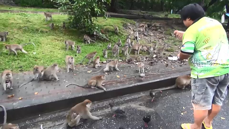สงขลา-วันหยุดสุดสัปดาห์ นกพิราบและลิงเขาน้อยเขาตังกวนอิ่มเอมถ้วนหน้า หลังนักท่องเที่ยวเดินทางมาท่องเที่ยวที่แหลมสมิหลาสงขลา แวะมาเที่ยวชมฝูงลิงและฝูงนกพิราบที่บริเวณเชิงเขาตังกวน โดยซื้ออาหารให้ลิงและนกกิน เพื่อเป็นการทำบุญแจกทานให้กับสัตว์ถือเป็นการสร้างบุญสร้างกุศลให้กับตนเอง