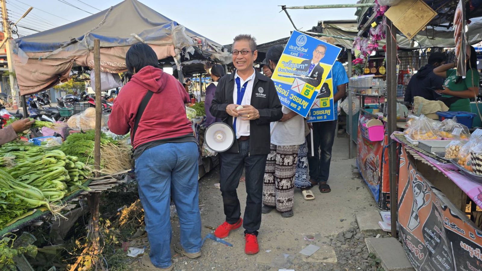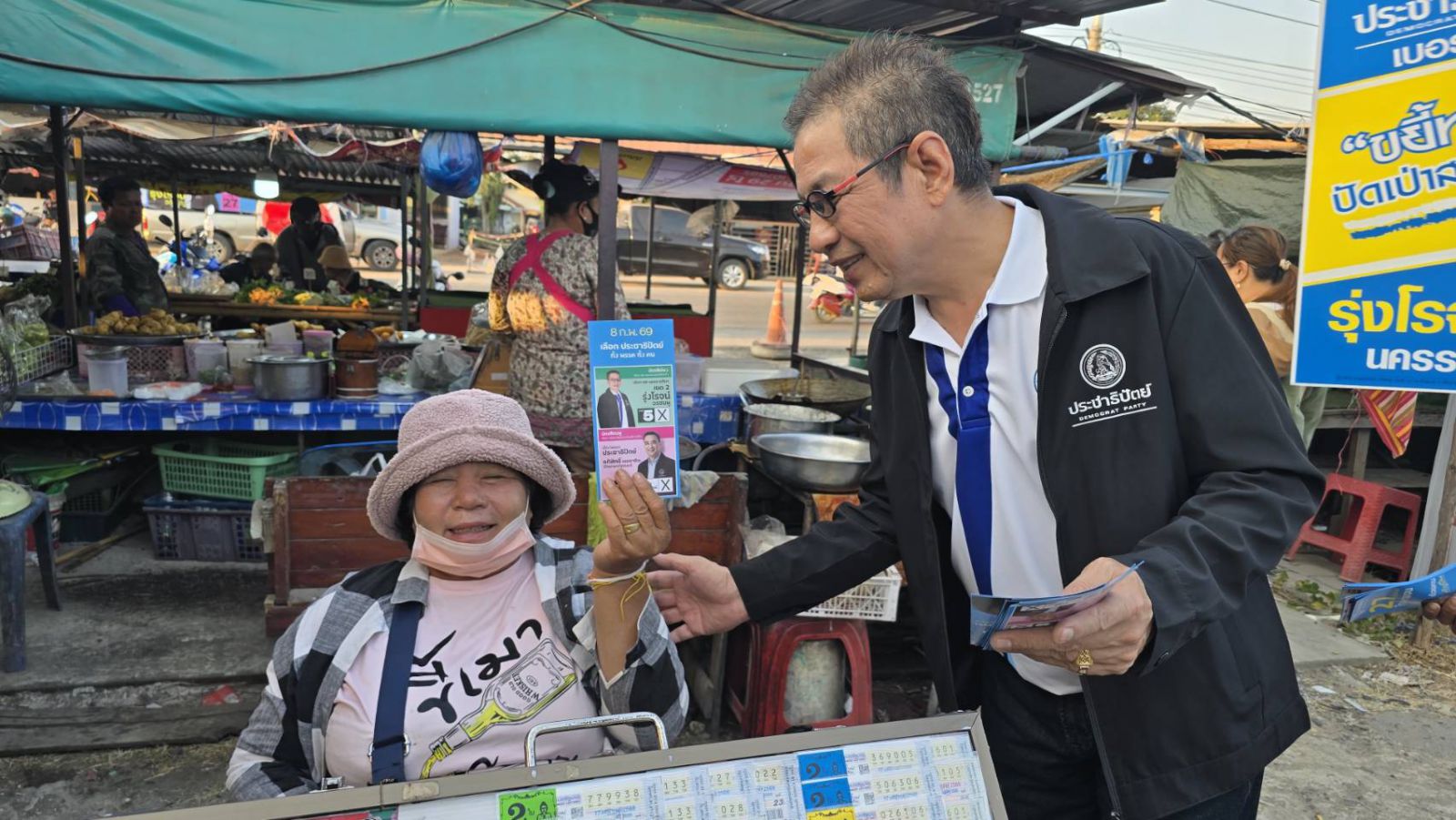 'เกิบแดงไม่หยุดเดิน'รุ่งโรจน์เขต2โคราช ลุยตลาดขอคะแนนหนุนพรรคปชป.