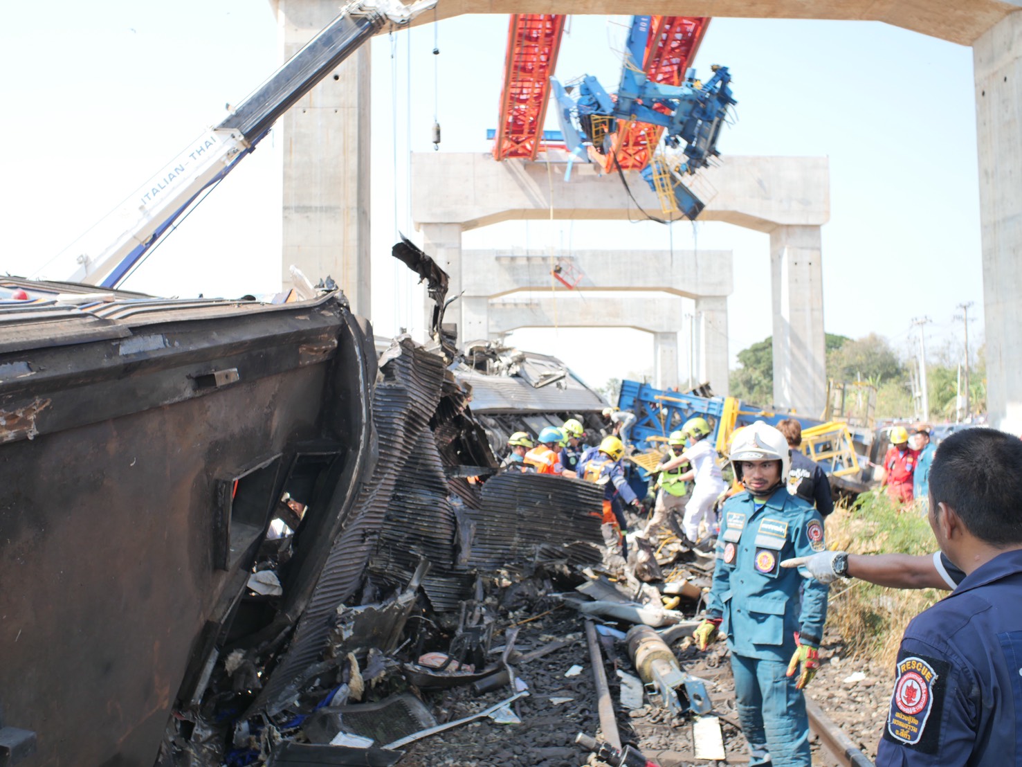 คปภ.โคราชรุดลงพื้นที่สีคิ้วอย่างเร่งด่วน! เครนสร้างรถไฟไทย-จีนตกทับ'โบกี้รถไฟ'