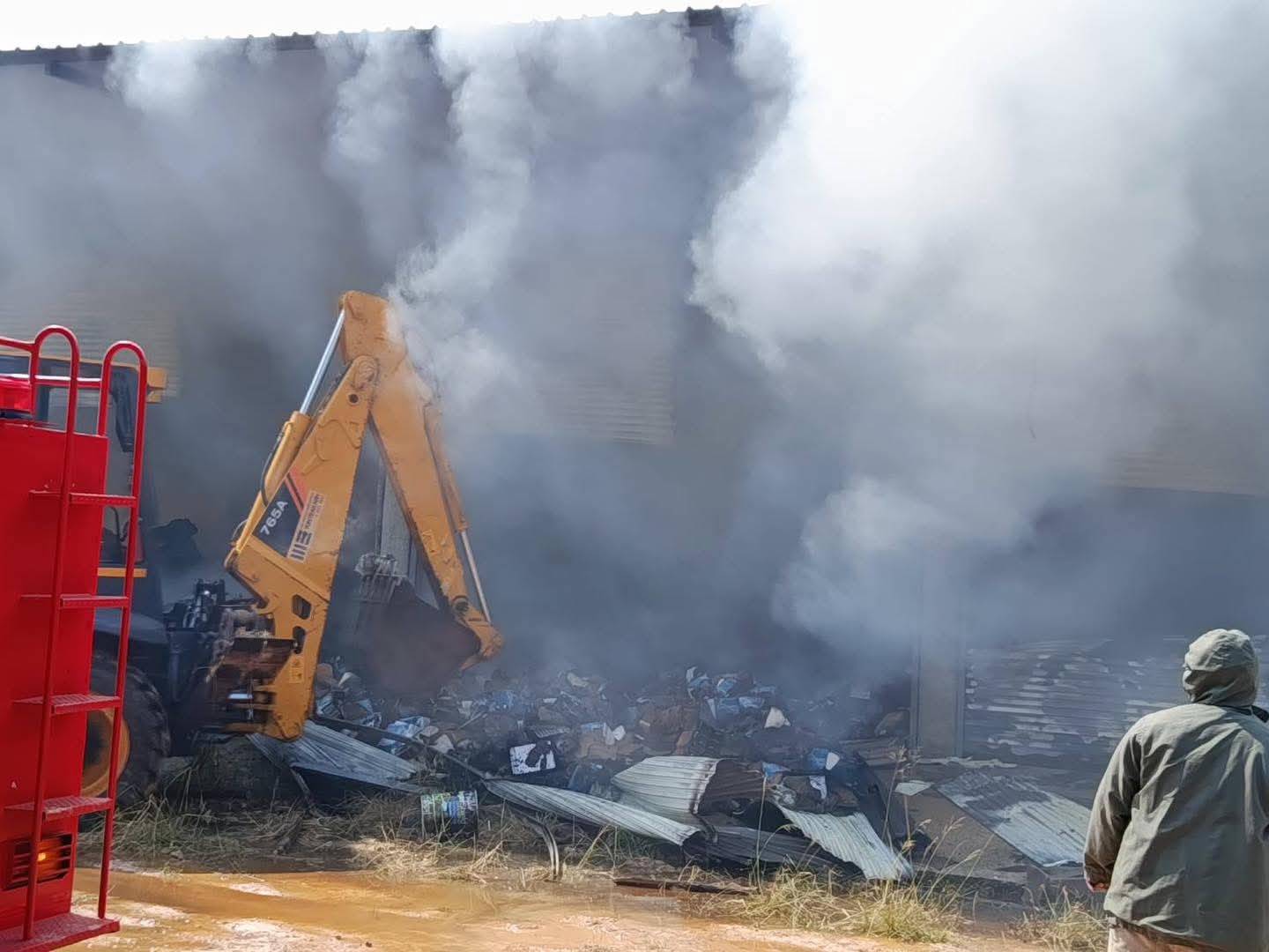 หน้าประตูโกดังพบปิดล็อคอยู่เจ้าหน้าที่ต้องใช้รถแบ็คโฮพังประตูเพื่อระดมฉีดน้ำดับเพลิง พร้อมกับ เจ้าหน้าที่ตำรวจ ได้สั่งการปิดการจราจรเพื่อดับเพลิงได้สะดวกไม่ให้ลุกลามอาคารข้างเคียงอื่น พร้อมได้ประสานรถฉีดน้ำดับเพลิงจากองค์กรปกครองส่วนท้องถิ่น(อปท.)ข้างเคียง รวมจำนวน 8 คัน จากเทศบาลเมืองปราจีนบุรี, องค์การบริหารส่วนจังหวัดปราจีนบุรี (อบจ.) องค์การบริหารส่วนตำบลรอบเมือง(อบต.),ตำบลท่างามอบต.),ตำบลดงพระราม (อบต.) บูรณาการ ร่วมระดมฉีดน้ำเพื่อควบคุมเพลิง