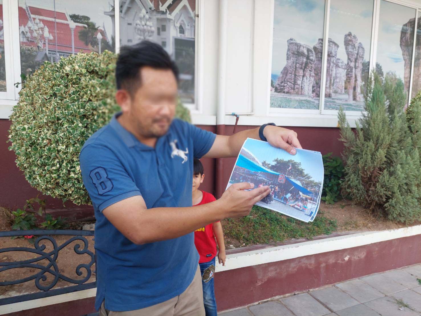 ด้านผู้รับเหมางานเจ้าพ่อ ให้สัมภาษณ์ต่อหน้านักข่าวและผู้ก่อเหตุว่า ตนเป็นผู้รับเหมารายใหม่ไม่ทราบหรอกว่าทั้งคู่มีปัญหาไม่พอใจกันมาก่อน แต่ยืนยันว่าผู้ที่มาติดต่อรายแรกคือร้านเจาะหู ส่วนนายเอกราช เสียงหล่า ผู้ก่อเหตุมาติดต่อเป็นรายที่สองและตนก็แจ้งกติกาแล้วว่าห้ามนำปืนบีบีกันเข้ามาขายเด็ดขาด รวมทั้งแจ้งร้านเจาะหูด้วย ต่อมาเกิดมีปากเสียงกัน ตนผ่านมาเจอว่าร้านของนายเอกราช เสียงหล่า เปิดเพลงเสียงดังตนได้เข้าไปทำการถอดปลั๊กไฟออกแล้วแต่ไม่รู้ว่ามีการเสียบใหม่หรือไม่ และทั้งคู่ยังขยายพื้นที่รุกล้ำพื้นที่ส่วนที่สงวนไว้เพื่อให้คณะกรรมการศาลเจ้าพ่อ ได้ใช้เป็นพื้นที่ขายดอกไม้ธูปเทียนสัการะเจ้าพ่อด้วย ดังนั้นตนจึงขอยืนยันว่ากรณีที่เกิดขึ้นนี้ตนไม่มีส่วนเกี่ยวข้องใดๆ เป็นการสมัครใจทะเลาะวิวาทของทั้งสองฝ่าย เมื่อเกิดเป็นคดีความก็ขอให้เจ้าหน้าที่ดำเนินการตามกฎหมาย ตนไม่ปกป้องฝ่ายหนึ่งฝ่ายใดอย่างแน่นอน