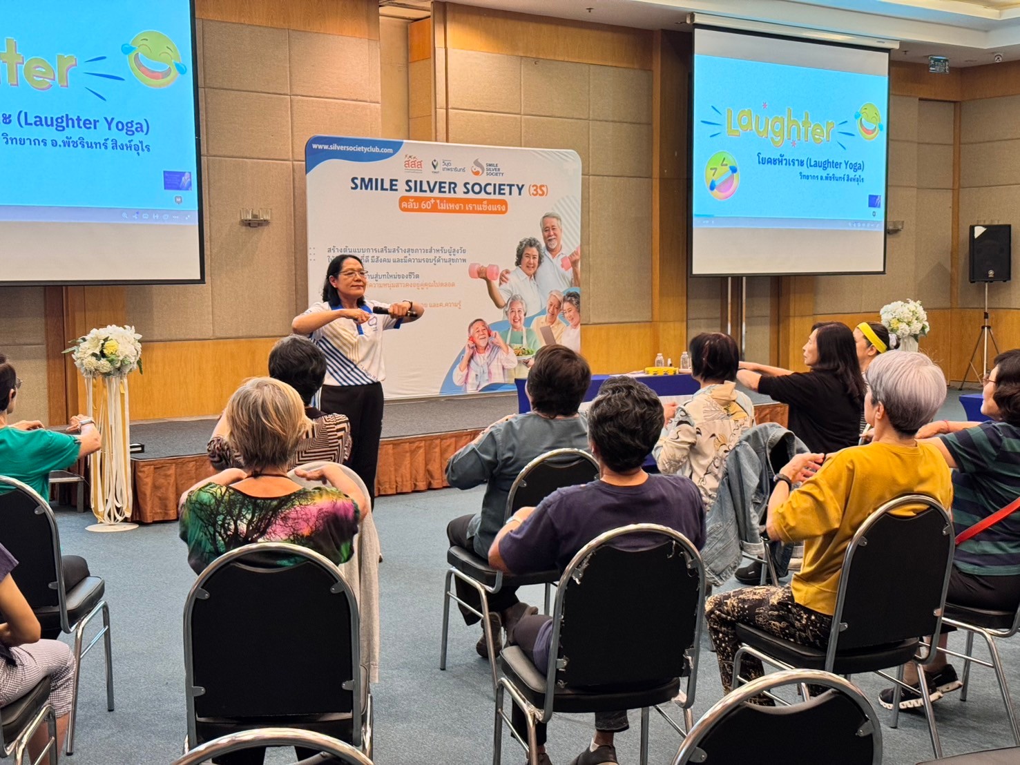 “เป้าหมายสูงสุดของโครงการ Smile Silver Society และคลับ 60⁺ ไม่เหงา เราแข็งแรง คือ การสร้างต้นแบบศูนย์ดูแลผู้สูงวัย และสร้างผู้สูงวัยต้นแบบที่มีความรู้ด้านสุขภาพ มีร่างกายแข็งแรง และจิตใจเบิกบาน เพื่อเป็นผู้นำในการส่งต่อความรู้และดูแลสุขภาพให้กับผู้สูงวัยในชุมชนอื่นต่อไป นับเป็นการขยายสังคมแห่งความสุขที่แข็งแรงและยั่งยืน คลับนี้จึงไม่ใช่แค่กิจกรรมระยะสั้น แต่เป็นชุมชนเล็ก ๆ ที่ช่วยประคับประคองทั้งสุขภาพกายและใจของผู้สูงวัยไปพร้อมกัน” ศ.เกียรติคุณ นพ.เทพ กล่าว