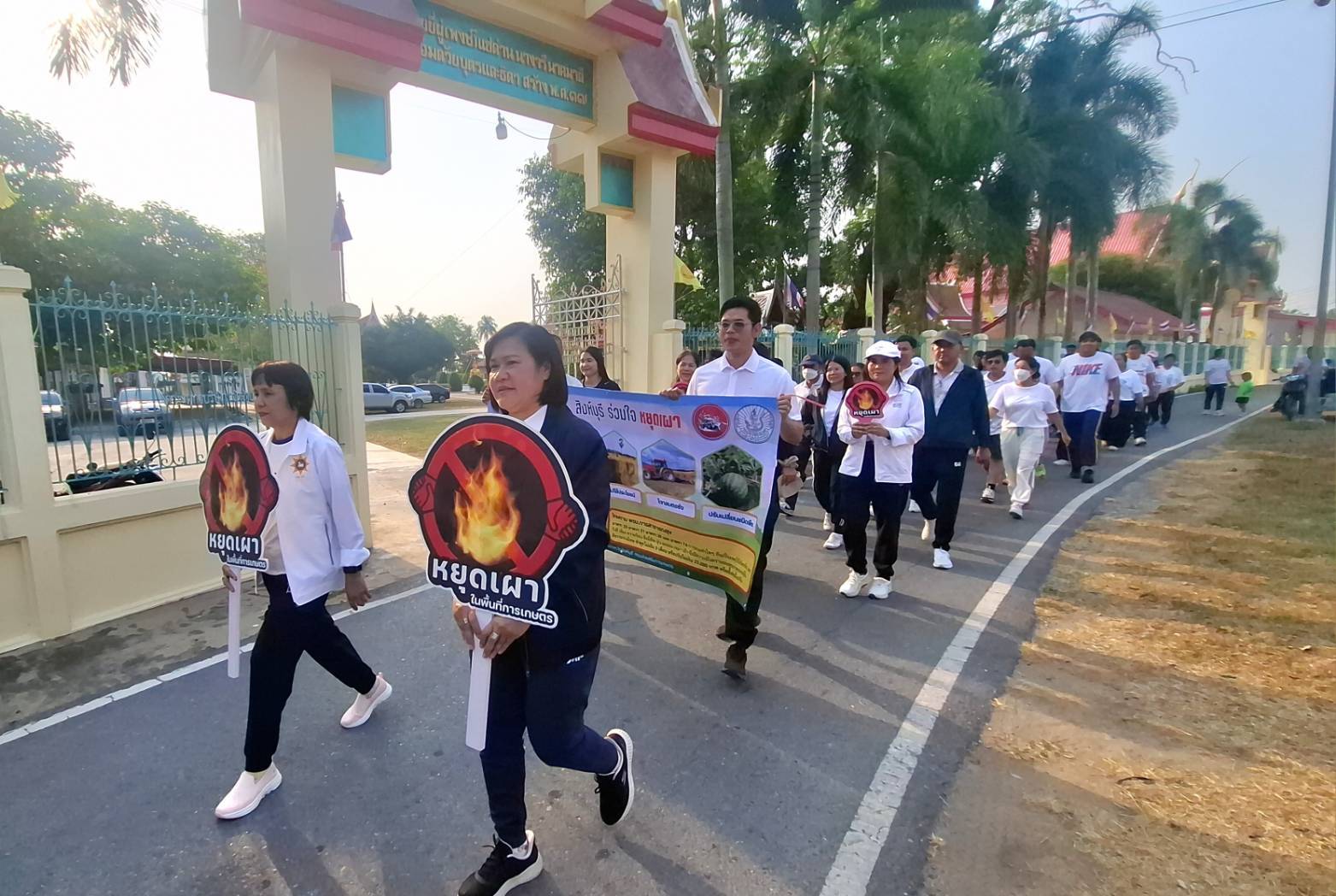ในการนี้ได้ร่วมกันเดินเท้าจากจุดเริ่มต้นบริเวณ ชุมชนบ้านจำปาทอง มุ่งหน้าสู่ หน้าองค์พระใหญ่ ตำบลโพประจักษ์ อำเภอท่าช้าง รวมระยะทางทั้งสิ้น 3 กิโลเมตรโดยตลอดเส้น ยังได้พบปะพี่น้องประชาชนเพื่อสร้างความตระหนักรู้ถึงผลกระทบจากการเผาป่าและตอซังข้าว พร้อมขอความร่วมมือให้ปรับเปลี่ยนวิธีจัดการวัสดุเหลือใช้ทางการเกษตรแทนการเผา