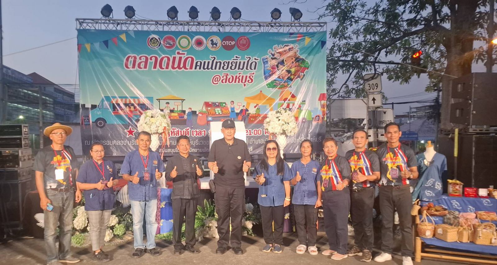 ภายหลังพิธีเปิด ประธานในพิธีและคณะผู้บริหารได้เยี่ยมชมบูธจำหน่ายสินค้า OTOP และสินค้าสัมมาชีพชุมชน เพื่อให้กำลังใจแก่ผู้ผลิตและผู้ประกอบการ โดยตลาดนัดคนไทยยิ้มได้ ณ บริเวณฝาครอบคลอง หน้าโรงพยาบาลสิงห์บุรีเวชชการ (หมอประเจิด) นับเป็นตลาดนัดภายใต้การกำกับดูแลของสำนักงานพัฒนาชุมชนจังหวัดสิงห์บุรี และเป็นอีกหนึ่งพื้นที่สำคัญในการขับเคลื่อนเศรษฐกิจฐานรากของจังหวัดให้เติบโตอย่างมั่นคง มั่งคั่ง และยั่งยืน
