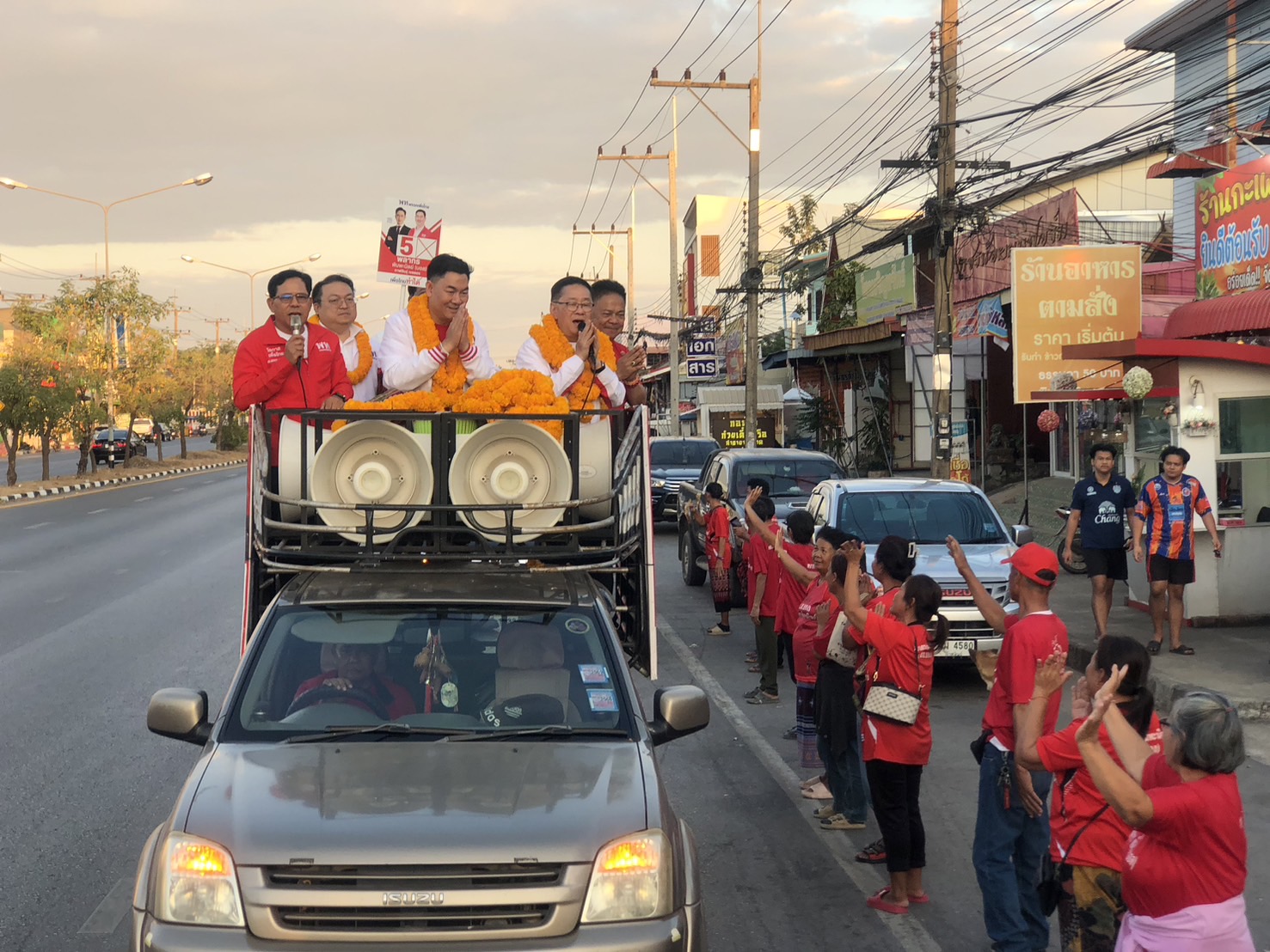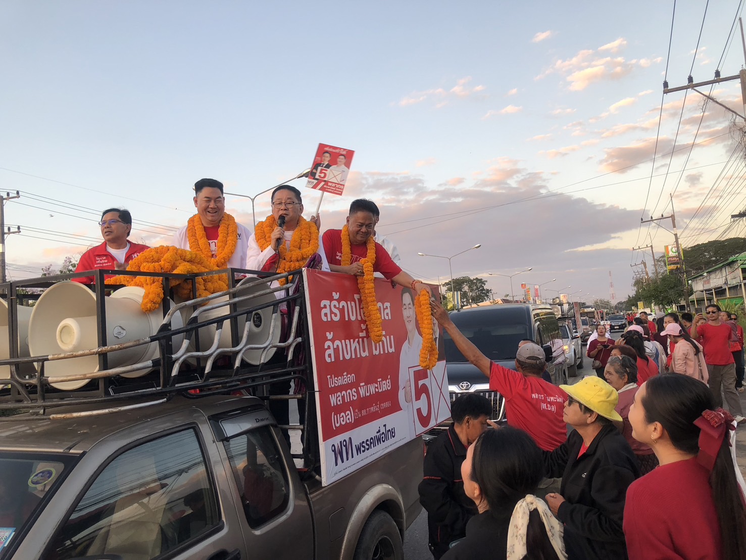 กาฬสินธุ์-“ประเสริฐ จันทรรองทอง” เลขาธิการพรรคเพื่อไทย ขึ้นรถแห่หาเสียงช่วย “พลากร พิมพะนิตย์” ผู้สมัครสส.กาฬสินธุ์ เขต 2 พรรคเพื่อไทย เบอร์ 5 ท่ามกลางประชาชนชาวอำเภอยางตลาด และอำเภอฆ้องชัย ที่แห่มามอบดอกไม้ให้กำลังใจกันจำนวนมาก พร้อมมั่นใจรักษาแชมป์ เขต 2 ได้แน่นอน