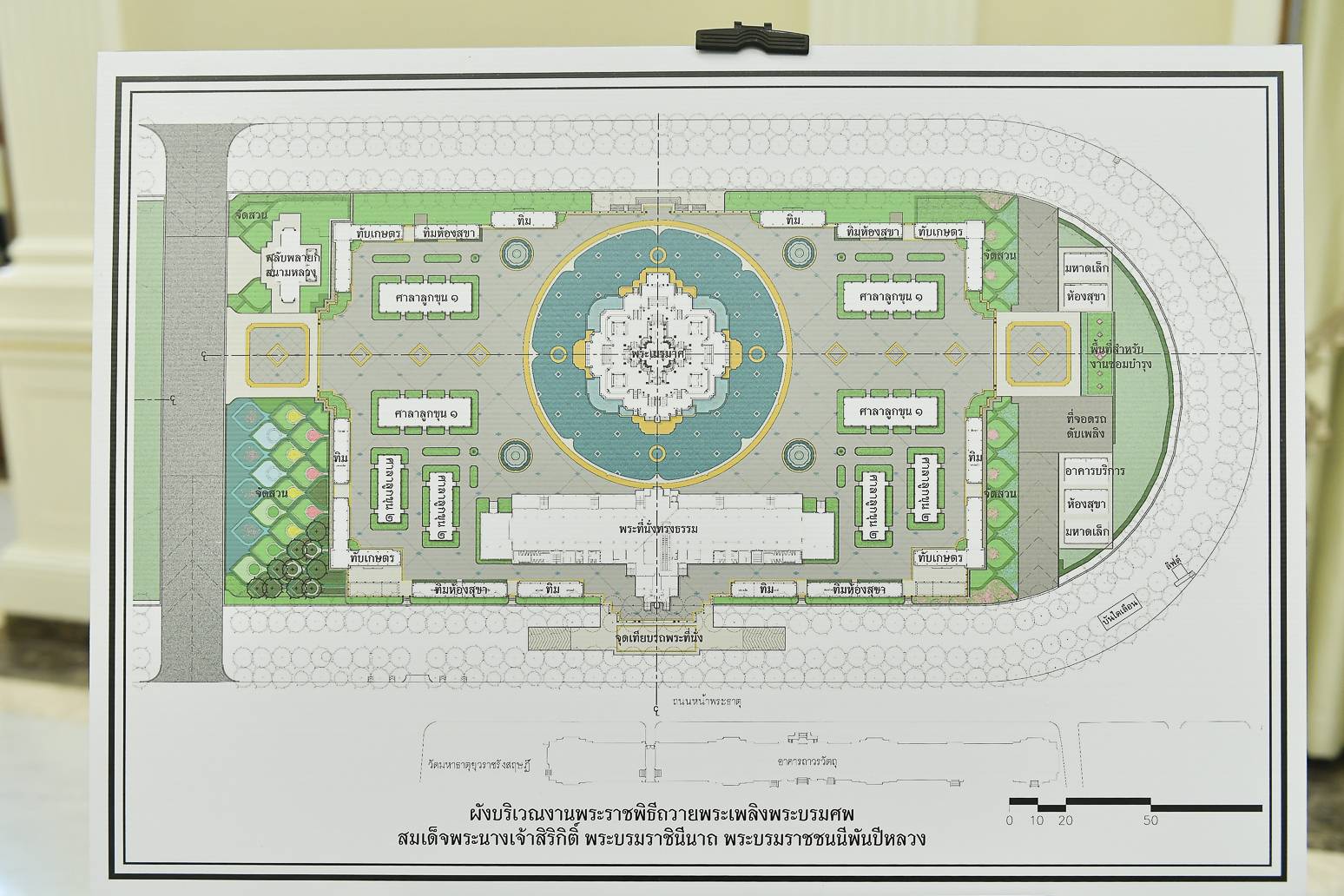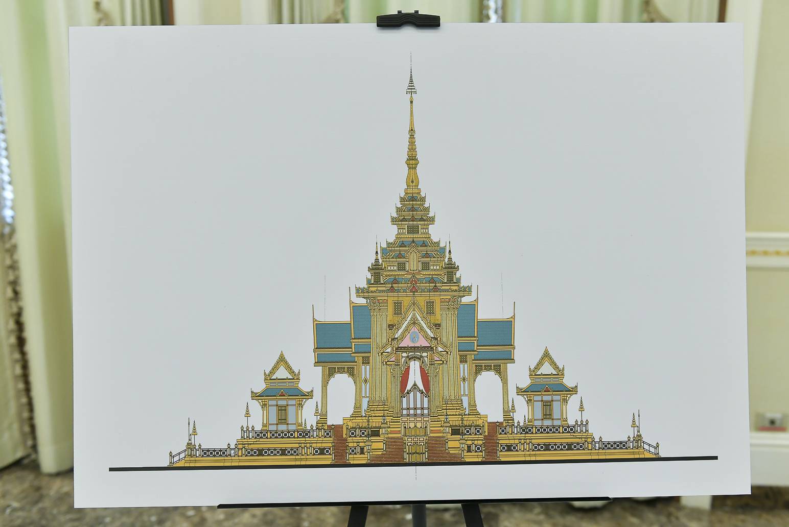 รัฐบาลได้มอบหมายให้กระทรวงวัฒนธรรม โดยกรมศิลปากรดำเนินการออกแบบ และจัดสร้างพระเมรุมาศและสิ่งปลูกสร้างประกอบพระเมรุมาศ การบูรณปฏิสังขรณ์ราชรถและพระยานมาศ การออกแบบพระหีบจันทน์ พระโกศจันทน์ และเครื่องสังเค็ดในพระราชพิธีถวายพระเพลิงพระบรมศพ ซึ่งบัดนี้ พระบาทสมเด็จพระเจ้าอยู่หัว ได้ทรงพระกรุณาโปรดเกล้าโปรดกระหม่อมพระราชทานพระบรมราชานุมัติให้จัดสร้างตามรูปแบบที่รัฐบาลกราบบังคมทูลพระกรุณาแล้ว