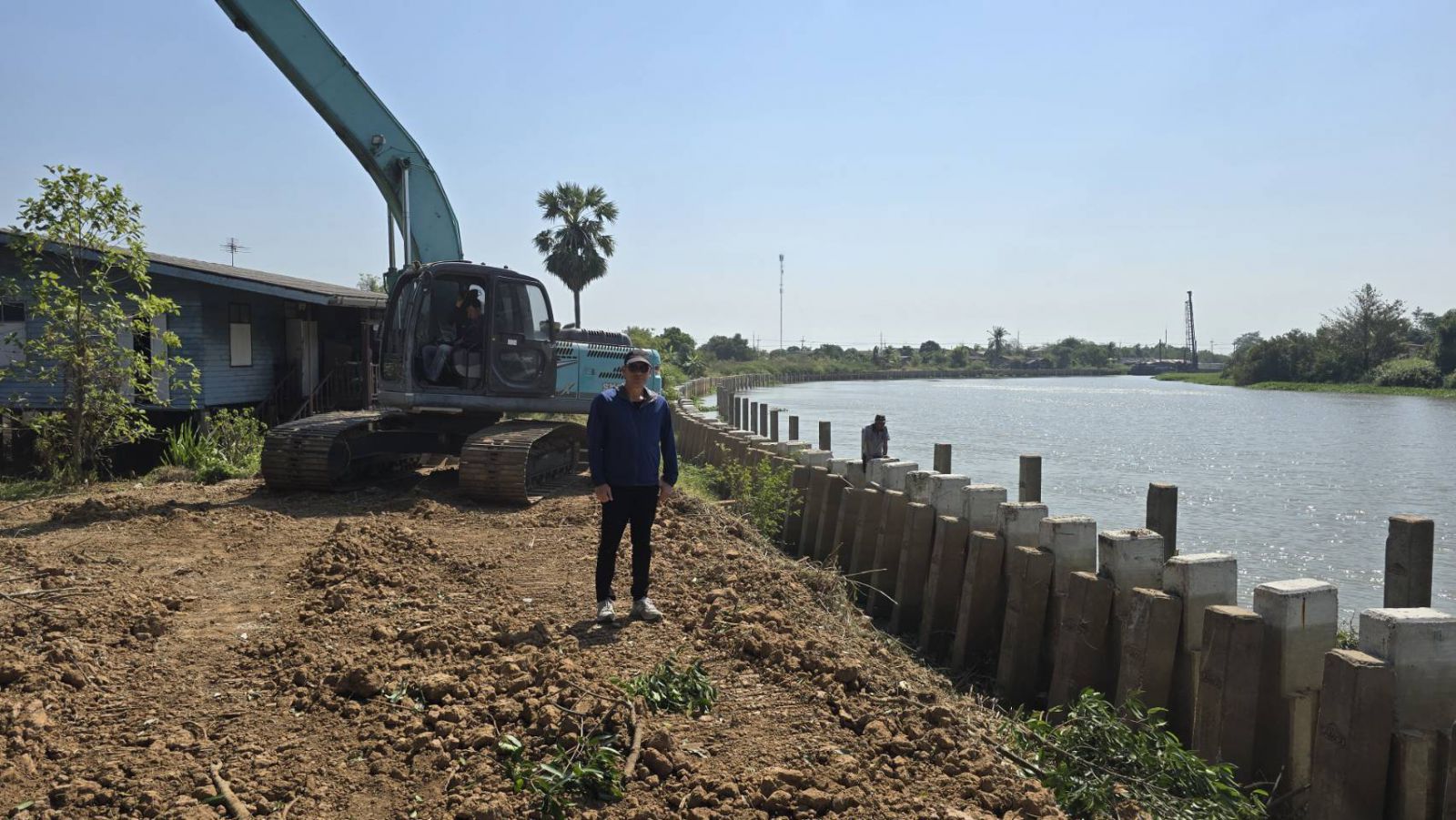 จากนั้นได้ลงพื้นที่จริง ในการติดตามโครงการเขื่อนป้องกันตลิ่งพังดังกล่าว รวม 2 แห่ง ที่ริมแม่น้ำปราจีนบุรี หรือ แม่น้ำบางปะกง อ.บ้านสร้าง จ.ปราจีนบุรี