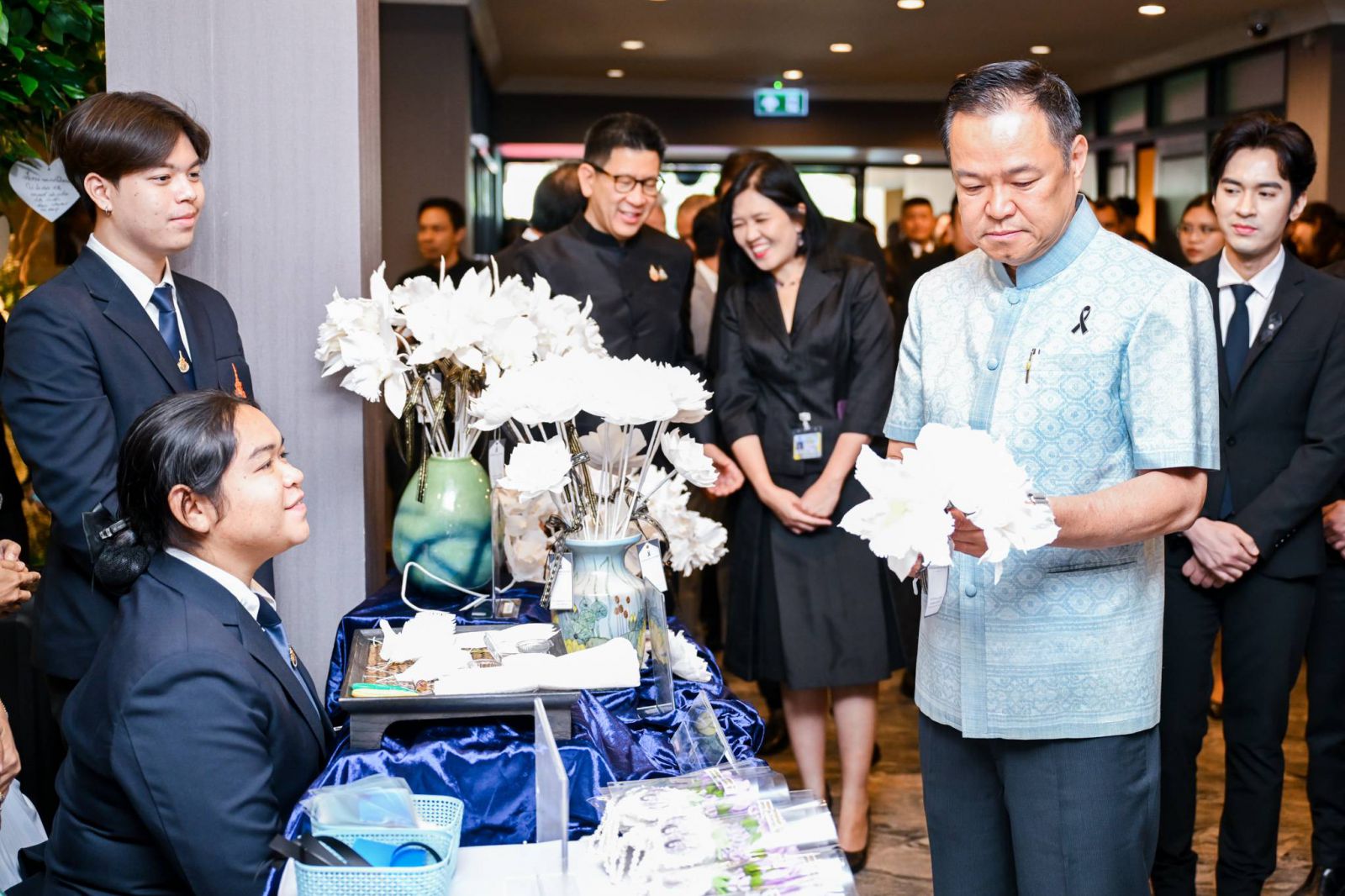 กรุงเทพฯ-นายกฯ อนุทิน รับชมการสาธิต จัดทำริบบิ้นแสดงความอาลัย น้อมรำลึกในพระมหากรุณาธิคุณสมเด็จพระนางเจ้าสิริกิติ์ พระบรมราชินีนาถ พระบรมราชชนนีพันปีหลวงและการสาธิตประดิษฐ์ดอกไม้ในพระนามาภิไธย “ควีนสิริกิติ์”