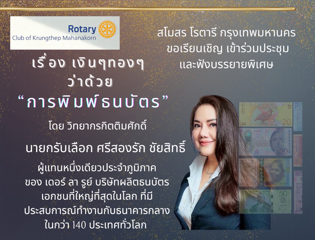 สโมสรโรตารีกรุงเทพฯประชุมประจำเดือน บรรยาย'เงินๆทองๆว่าด้วย'พิมพ์ธนบัตร'