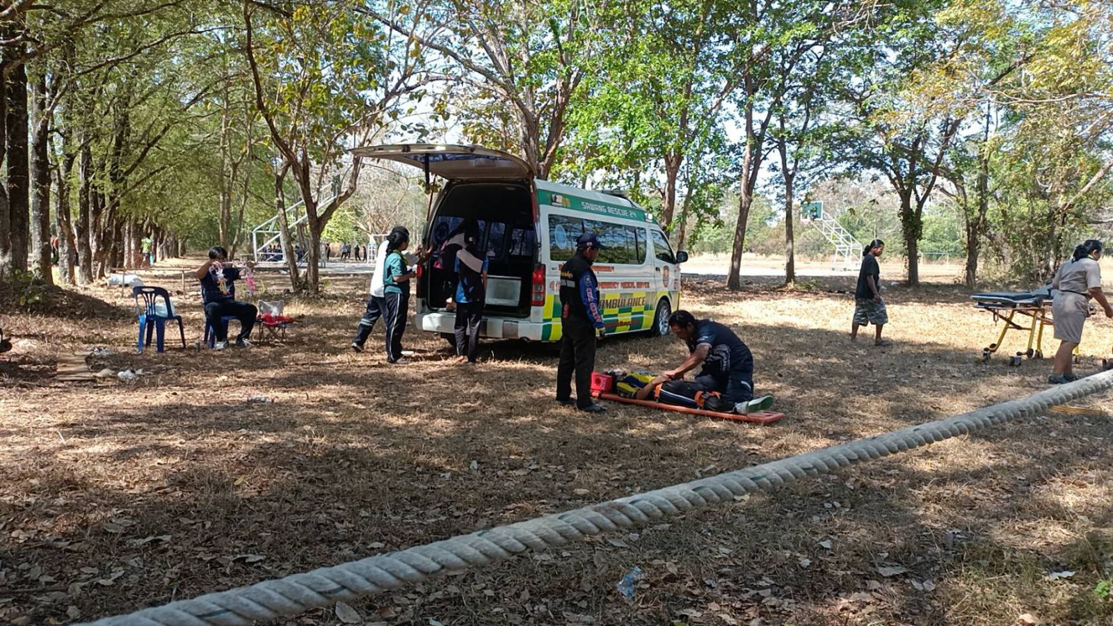 ปราจีนบุรี-เมื่อเวลา 11.15น.วันที่ 28 มกราคม 2568 ผู้สื่อข่าวรายงานจาก จ.ปราจีนบุรี หน่วยกู้ภัยมูลนิธิสัจจะพุทธธรรมแห่งประเทศไทย(อ.กบินทร์บุรี)ได้รับแจ้งที่สนามโรงเรียนลาดตะเคียนราษฎร์ ตำบลลาดตะเคียน อำเภอกบินทร์บุรี จังหวัดปราจีนบุรี สังกัดสำนักงานเขตพื้นที่การศึกษามัธยมศึกษาปราจีนบุรี นครนายก (สพม.7) ได้เกิดเหตุระทึกขณะที่ลูกเสือเนตรนารีกำลังเข้าค่ายลูกเสือ บริเวณฐานผจญภัยข้างสนามฟุตบอลหน้าโรงเรียน ได้เข้าค่ายลูกเสือ-เนตรนารี