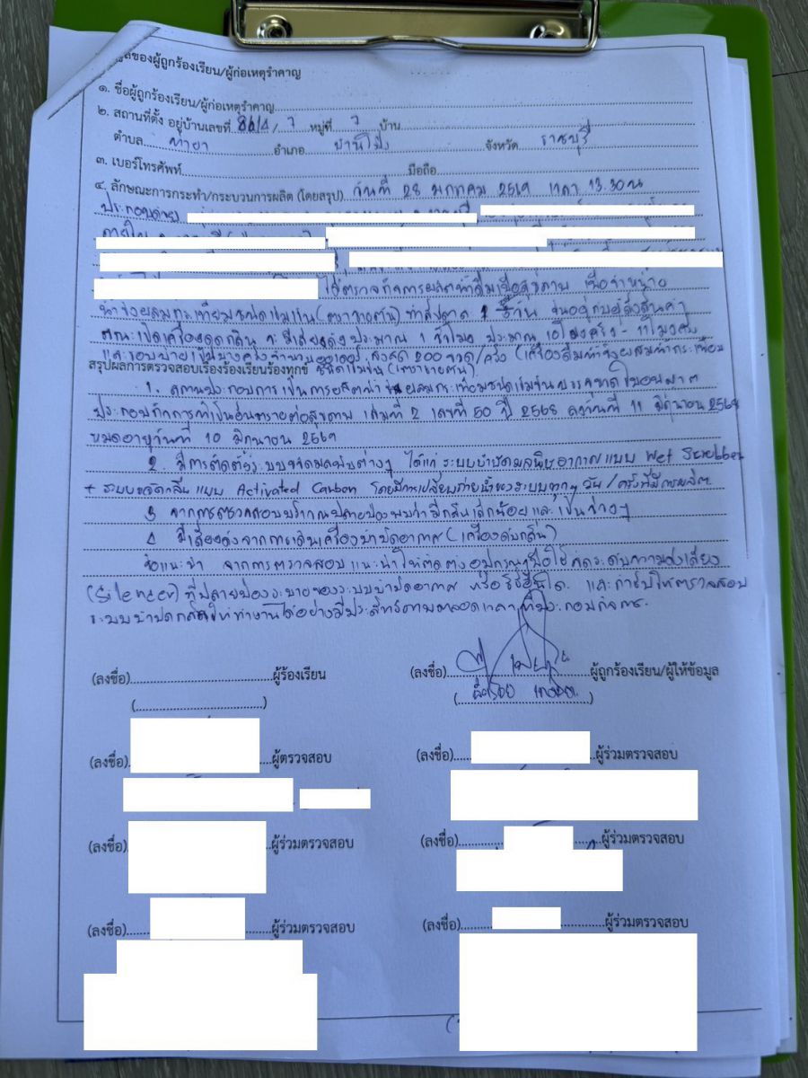 สรุปผลการตรวจสอบ ทางเจ้าหน้าที่ให้เราหมั่นตรวจสอบเครื่องดักกลิ่น เปลี่ยนไส้กรองตามระยะเวลา ส่วนเรื่องเสียงถึงไม่ดังเกินตามที่กฏหมายกำหนด แต่ก็อยากให้ติดเครื่องกรองเสียงให้หน่อย ทางบริษัทเรายินดีเพิ่มต้นทุนติดตั้งให้ครับ ถึงจะไม่ผิดก็ตาม แต่อยากให้ทุกอย่างผ่านไปด้วยดีทั้งผู้ร้องจะได้สบายใจตามที่เค้าต้องการที่สำคัญทางบริษัทเราสงสารเจ้าหน้าที่ต้องมายืนตากแดด ทุกครั้งที่เวลามาตรวจ