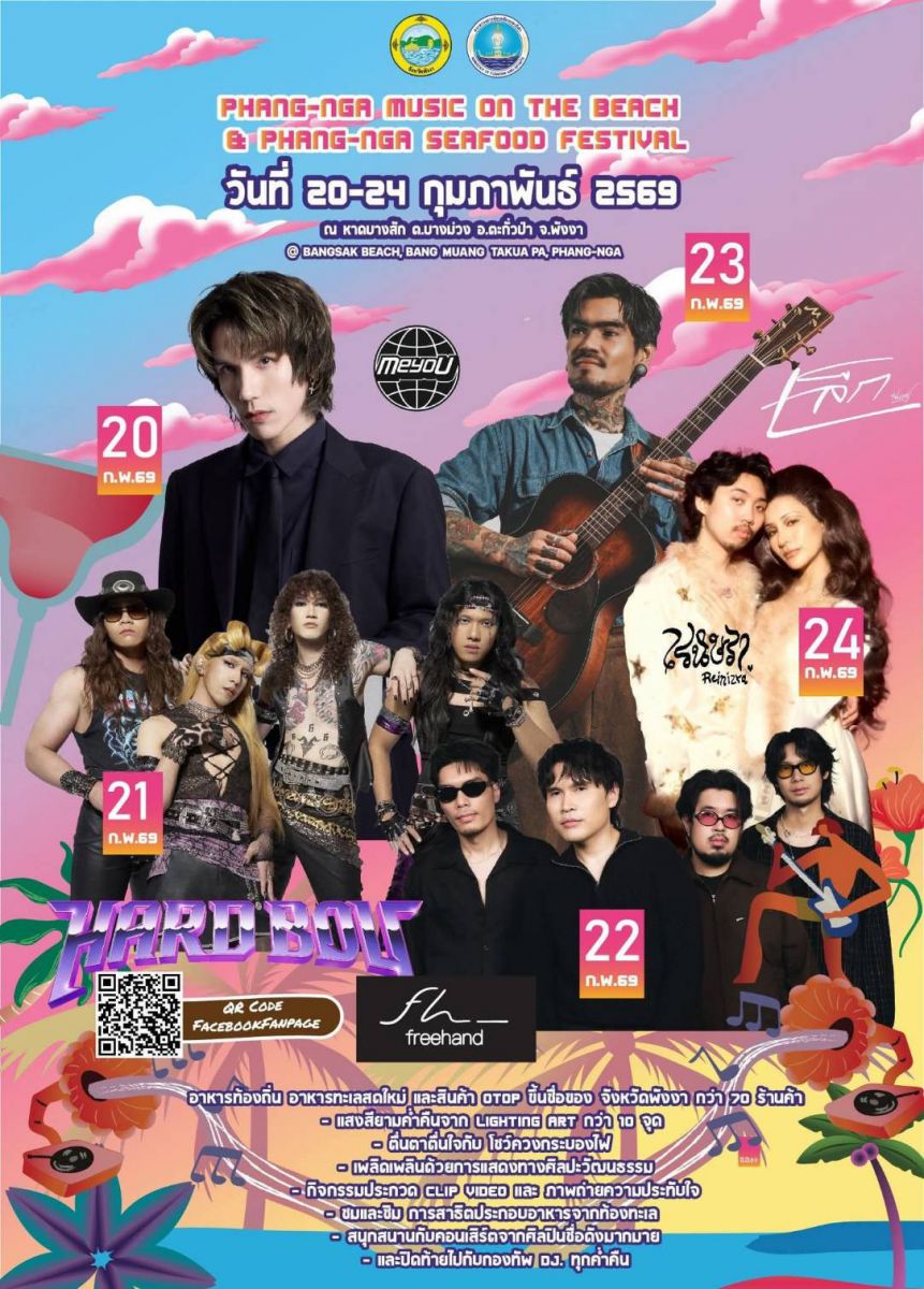 พังงา-จังหวัดพังงาแถลงข่าวเตรียมจัดงาน “Phangnga Music on The Beach & Phangnga Seafood Festival” มหกรรมดนตรีริมทะเลควบคู่เทศกาลอาหารทะเล ชูอัตลักษณ์ท้องถิ่นด้านศิลปวัฒนธรรม อาหาร และวิถีชุมชน หวังดึงนักท่องเที่ยวทั้งชาวไทยและต่างชาติ กระตุ้นการใช้จ่ายและกระจายรายได้สู่เศรษฐกิจฐานรากอย่างยั่งยืน