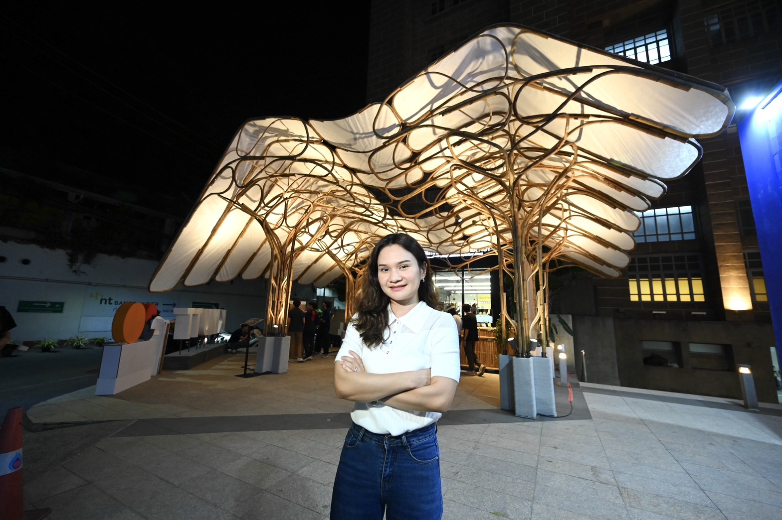 ซึ่งปีนี้เรามุ่งขยายภาพลักษณ์ของ Tyvek® จากวัสดุเฉพาะทางในภาคอุตสาหกรรม สู่การเป็นวัสดุทางเลือกในงานสถาปัตยกรรมและงานคราฟต์ไทย โดยสะท้อนบทบาทของการออกแบบในฐานะตัวเร่งนวัตกรรม (Design - driven Innovation) ที่ช่วยขยายขอบเขตการใช้งานของวัสดุอุตสาหกรรม ไปสู่กลุ่มนักออกแบบ สถาปนิก และโครงการระดับนานาชาติ ผ่านงานสถาปัตยกรรมที่ผสานงานฝีมือเข้ากับเทคโนโลยีดิจิทัลอย่างลงตัว ซึ่งผลงาน ‘ส่อง สาย สาน’ ได้นำวัสดุจาก Tyvek® ที่ใช้เส้นใย โพลีเอทิลีน (HDPE) คุณภาพสูงที่มีความเหนียว ทนทาน และกันน้ำ มาขึ้นรูปเป็นหลังคา ผสมผสานกับโครงสร้างหวายดัดด้วยไอน้ำ ซึ่งต้องอาศัยทักษะช่างฝีมือควบคู่กับความแม่นยำของเทคโนโลยี Mix Reality อย่างแว่นตา Hololens ที่ไม่เพียงสร้างความแตกต่างให้กับผลงาน แต่ยังเปิดโอกาสใหม่ในการต่อยอดสู่โครงการระดับสากลในอนาคต”