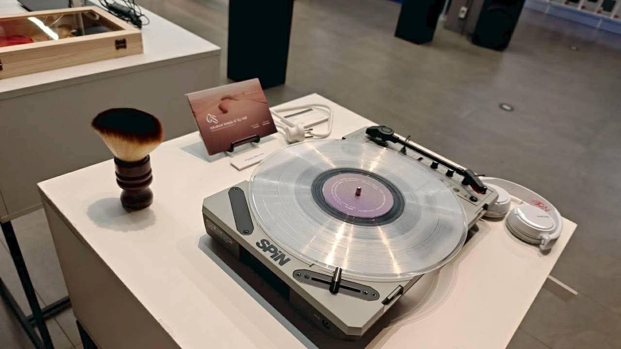 ผลงาน “Ephemeral Sounds of the Gulf” ของ คุณ Erika Tsuchiya ศิลปินสื่อผสมและโปรดิวเซอร์ชาวญี่ปุ่นจาก VCUarts Qatar ที่หยิบยกประเด็น “ความถาวรและความไม่จีรัง” มาตั้งคำถามต่อรูปแบบการผลิตและการบริโภคในโลกทุนนิยม ผ่านการทดลองใช้แผ่นเสียงจากวัสดุชีวภาพ (Biomaterial Records) เป็นสื่อกลางทางดนตรี