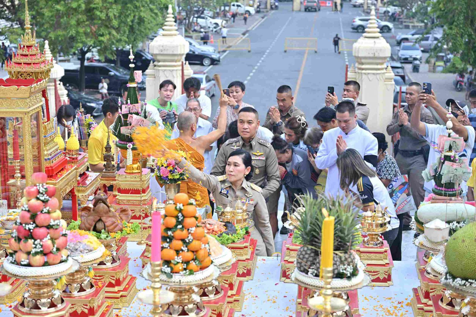 นครปฐม-พุทธศาสนิกชนร่วมพิธีบวงสรวง และปิดทองปฐมฤกษ์ องค์หลวงพ่อพระร่วงโรจนฤทธิ์ ศรีอินทราทิตย์ธรรโมภาส มหาวชิราวุธราชปูชนียบพิตร (องค์จริง) เนื่องในโอกาสประดิษฐานครบ 111 ปี เพื่อความเป็นสิริมงคลแก่ชีวิต และครอบครัว