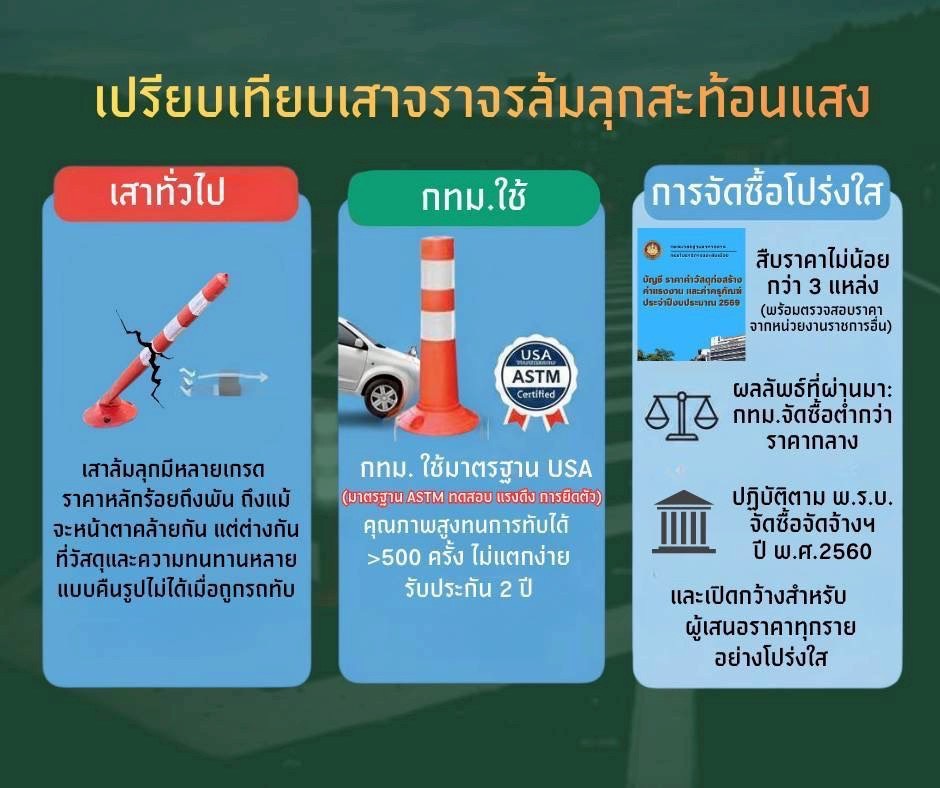 นายสิทธิพร สมคิดสรรพ์ ผู้อำนวยการสำนักการจราจรและขนส่ง (สจส.) กทม. กล่าวกรณีมีข้อวิจารณ์ กทม. กำหนดราคากลางจัดซื้อเสาจราจรล้มลุกสะท้อนแสงในราคา 1,600 บาท/อัน เป็นราคาที่สูงกว่าราคาท้องตลาด รวมถึงข้อสังเกตความเหมาะสมของการกำหนดคุณสมบัติและมาตรฐานของวัสดุที่จัดซื้อว่า การกำหนดราคากลางดังกล่าวดำเนินการตามขั้นตอนของกฎหมายอย่างเคร่งครัด โดยได้ดำเนินการสืบราคาจากบริษัท หรือห้างร้านต่าง ๆ ไม่น้อยกว่า 3 ราย เพื่อนำมาใช้เป็นข้อมูลประกอบการจัดทำราคากลางในการจัดซื้อจัดจ้าง โดยพิจารณาจากราคาต่ำสุดและมีการเปรียบเทียบกับราคาที่หน่วยงานราชการอื่นกำหนด หรือจัดซื้อ ซึ่งในปีงบประมาณปัจจุบัน ราคากลางที่ สจส. กำหนดมีราคาที่ถูกลง ขณะที่การจัดทำขอบเขตของงาน (TOR) ได้เปิดกว้างให้บริษัท หรือห้างร้าน สามารถเข้ายื่นเสนอราคา เพื่อให้เกิดการแข่งขันด้านราคาอย่างเป็นธรรม และเพื่อให้ทางราชการได้รับประโยชน์สูงสุด โดยการจัดซื้อจัดจ้าง การกำหนดราคากลาง และการสืบราคากลาง ยึดตามพระราชบัญญัติการจัดซื้อจัดจ้างและการบริหารพัสดุภาครัฐ พ.ศ. 2560 เพื่อให้เกิดความมีประสิทธิภาพ โปร่งใส เป็นธรรม คุ้มค่ากับการใช้จ่ายงบประมาณและเกิดประโยชน์สูงสุดต่อทางราชการ