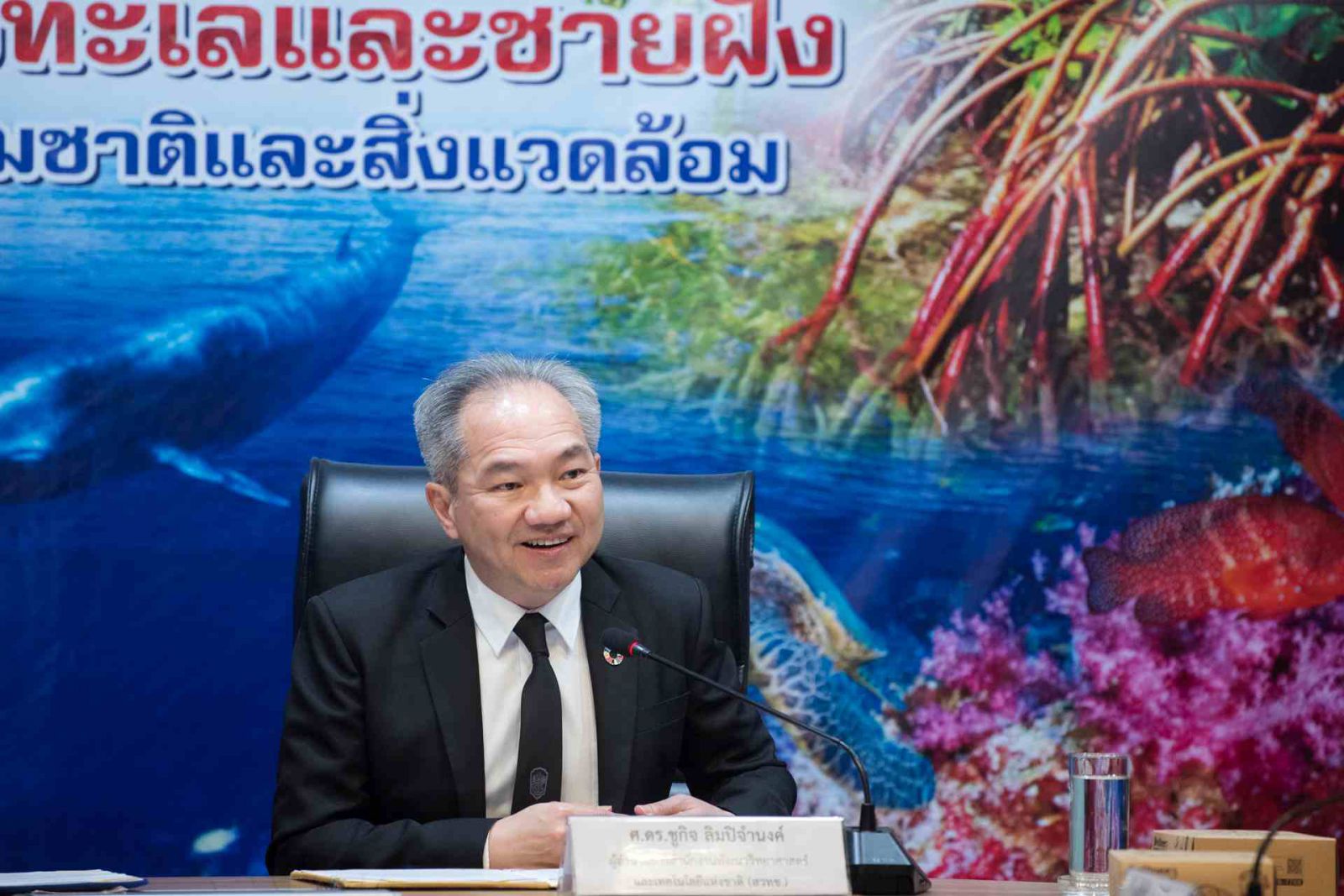 ดร.ปิ่นสักก์ สุรัสวดี อธิบดีกรมทรัพยากรทางทะเลและชายฝั่ง กล่าวว่า ทรัพยากรป่าชายเลนและระบบนิเวศทางทะเล คือต้นทุนธรรมชาติที่สำคัญ เป็นทั้งแหล่งอนุบาลสัตว์น้ำ แนวป้องกันภัย และแหล่งกักเก็บคาร์บอน แต่ด้วยสภาพภูมิอากาศโลกที่เปลี่ยนแปลง การอนุรักษ์ด้วยวิธีเดิมอาจไม่เพียงพอ จำเป็นต้องนำวิทยาศาสตร์ เทคโนโลยี และนวัตกรรม เข้ามาช่วยเพิ่มประสิทธิภาพในการทำงาน การลงนามในวันนี้เป็นการยกระดับพันธกิจระหว่างกรมทรัพยากรทางทะเลและชายฝั่ง ในฐานะผู้ดูแลและบริหารจัดการพื้นที่ กับ สวทช. ซึ่งเปรียบเสมือนคลังสมองและผู้นำด้านเทคโนโลยีของประเทศ เพื่อผนึกกำลังนำวิทยาศาสตร์ เทคโนโลยี และนวัตกรรม มาเป็นเครื่องมือหลักในการทำงานด้านการอนุรักษ์ โดยภายใต้กรอบความร่วมมือระยะเวลา 5 ปี มีเป้าหมายขับเคลื่อนการวิจัย สร้างองค์ความรู้และนวัตกรรมที่นำมาใช้แก้ปัญหาได้จริง พร้อมประยุกต์ใช้เทคโนโลยีสมัยใหม่เพื่อสนับสนุนการอนุรักษ์ ฟื้นฟูระบบนิเวศ ป้องกันการกัดเซาะชายฝั่ง และร่วมมือกันเพื่อบริหารจัดการข้อมูล ส่งเสริมการแลกเปลี่ยนบุคลากร เพื่อให้เกิดการใช้ประโยชน์ทรัพยากรในท้องถิ่นอย่างยั่งยืน