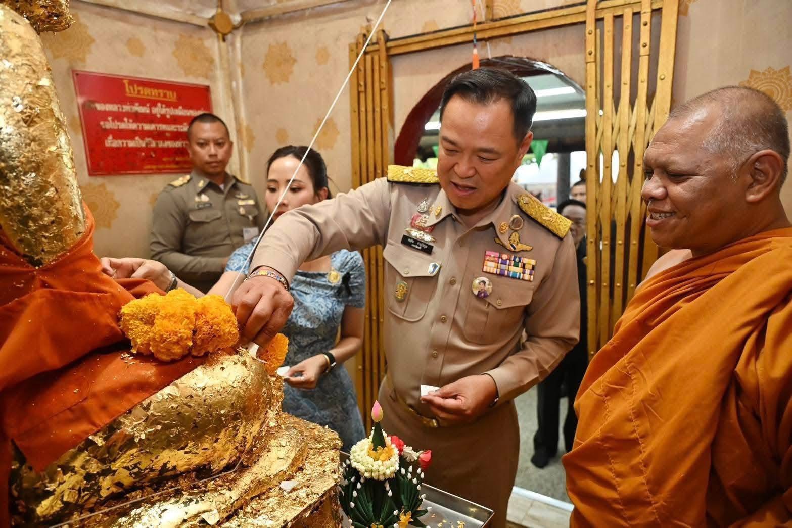 สุราษฏร์ธานี-วันนี้ (20 ก.พ. 69) เวลา 18.00 น. ที่วัดพัฒนาราม พระอารามหลวง อ.เมืองสุราษฎร์ธานี จ.สุราษฎร์ธานี นายอนุทิน ชาญวีรกูล นายกรัฐมนตรีและรัฐมนตรีว่าการกระทรวงมหาดไทย พร้อมด้วยนางสาวธนนนท์ นิรามิษ ประธานกรรมการคู่สมรสคณะรัฐมนตรีและที่ปรึกษากิตติมศักดิ์สมาคมแม่บ้านมหาดไทย นายอรรษิษฐ์ สัมพันธรัตน์ ปลัดกระทรวงมหาดไทย นางจิณณารัชช์ สัมพันธรัตน์ นายกสมาคมแม่บ้านมหาดไทย นายสยาม ศิริมงคล อธิบดีกรมการพัฒนาชุมชน นายธีรพัฒน์ คัชมาตย์ อธิบดีกรมป้องกันและบรรเทาสาธารณภัย ลงพื้นที่ติดตามการส่งเสริมการท่องเที่ยวชุมชนเพื่อกระตุ้นเศรษฐกิจฐานรากในพื้นที่ โดยมี นายบันดาล สถิรชวาล นายวิทศักด์ จำเริญนุสิต นายกล้าณรงค์ ยุติธรรม นายจักรกฤษณ์ ฝั่งชลจิตร์ รองผู้ว่าราชการจังหวัดสุราษฎร์ธานี นางโสภา กาญจนะ นายกองค์การบริหารส่วนจังหวัดสุราษฎร์ธานี และเจ้าหน้าที่ที่เกี่ยวข้อง ร่วมลงพื้นที่