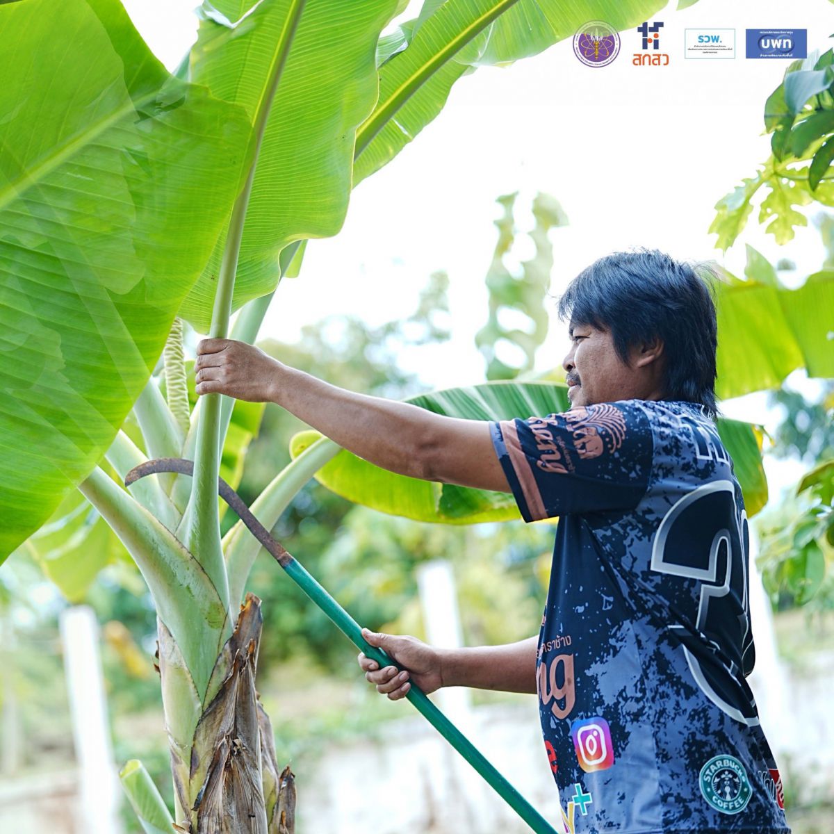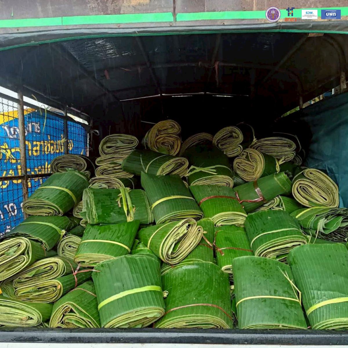 หากเอ่ยถึงจังหวัดนครพนม ภาพจำของผู้คนมักผูกโยงกับศรัทธาที่มีต่อองค์พญาศรีสัตตนาคราช แลนด์มาร์กสำคัญริมฝั่งโขง ภายใต้วิถีความเชื่อนี้ ‘บายศรี’ คือเครื่องสักการะที่ขาดไม่ได้ ซึ่งต้องอาศัยใบตองปริมาณมาก ไม่เพียงเท่านั้น นครพนมยังเป็นเมืองที่มีอาหารขึ้นชื่ออย่าง ‘หมูยอ’ ‘แหนม’ และโดยเฉพาะ ‘กะละแม’ ที่มีความต้องการใช้ใบตองสูงถึง 7 ล้านแผ่นต่อเดือน สะท้อนให้เห็นว่า “ใบตอง” คือตัวแปรสำคัญที่ขับเคลื่อนเศรษฐกิจฐานรากของจังหวัดนครพนม อีกทั้งพื้นที่จังหวัดที่เต็มไปด้วยสวนกล้วยตามหัวไร่ปลายนา ทว่าใบตองส่วนใหญ่ที่ใช้ในจังหวัดกลับต้องนำเข้ามาจากจังหวัดใกล้เคียงสัปดาห์ละหลายตัน เม็ดเงินจึงไหลออกนอกพื้นที่อย่างน่าเสียดาย สถานการณ์นี้จึงเป็นจุดเริ่มต้นของการเปลี่ยนแปลงครั้งใหญ่ของ “ธุรกิจรวบรวมใบตอง” ในพื้นที่