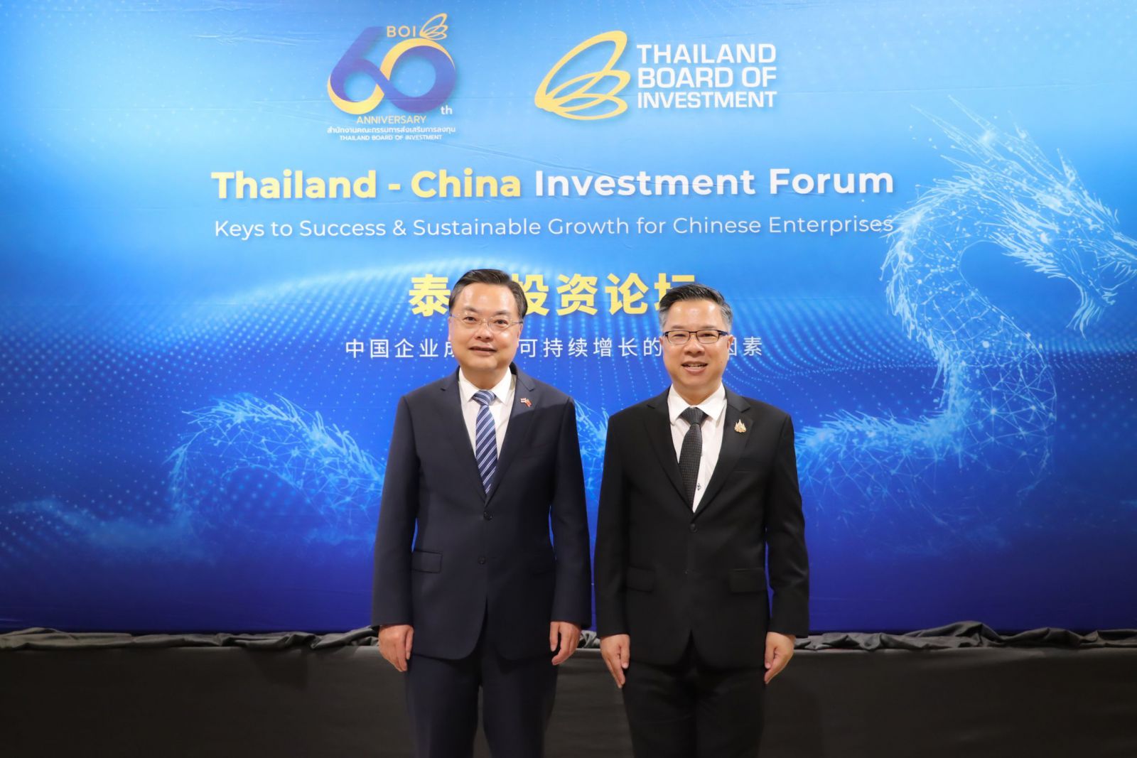 กรุงเทพฯ-บีโอไอ ร่วมกับสถานทูตจีนประจำประเทศไทย หน่วยงานภาครัฐและเอกชน จัดงาน "Thailand-China Investment Forum" นักลงทุนจีนเข้าร่วมงานคับคั่งกว่า 800 คน เปิดมุมมองใหม่สู่โอกาสการลงทุนในอุตสาหกรรมเทคโนโลยีขั้นสูง พร้อมให้ข้อมูลและแนวปฏิบัติที่ถูกต้องแก่นักลงทุนจีน ตอกย้ำยุทธศาสตร์การสร้างฐานการผลิตที่มีคุณภาพร่วมกัน สะท้อนความเชื่อมั่น ตัวเลขลงทุนจีน 5 ปี พุ่งกว่า 6 แสนล้านบาท