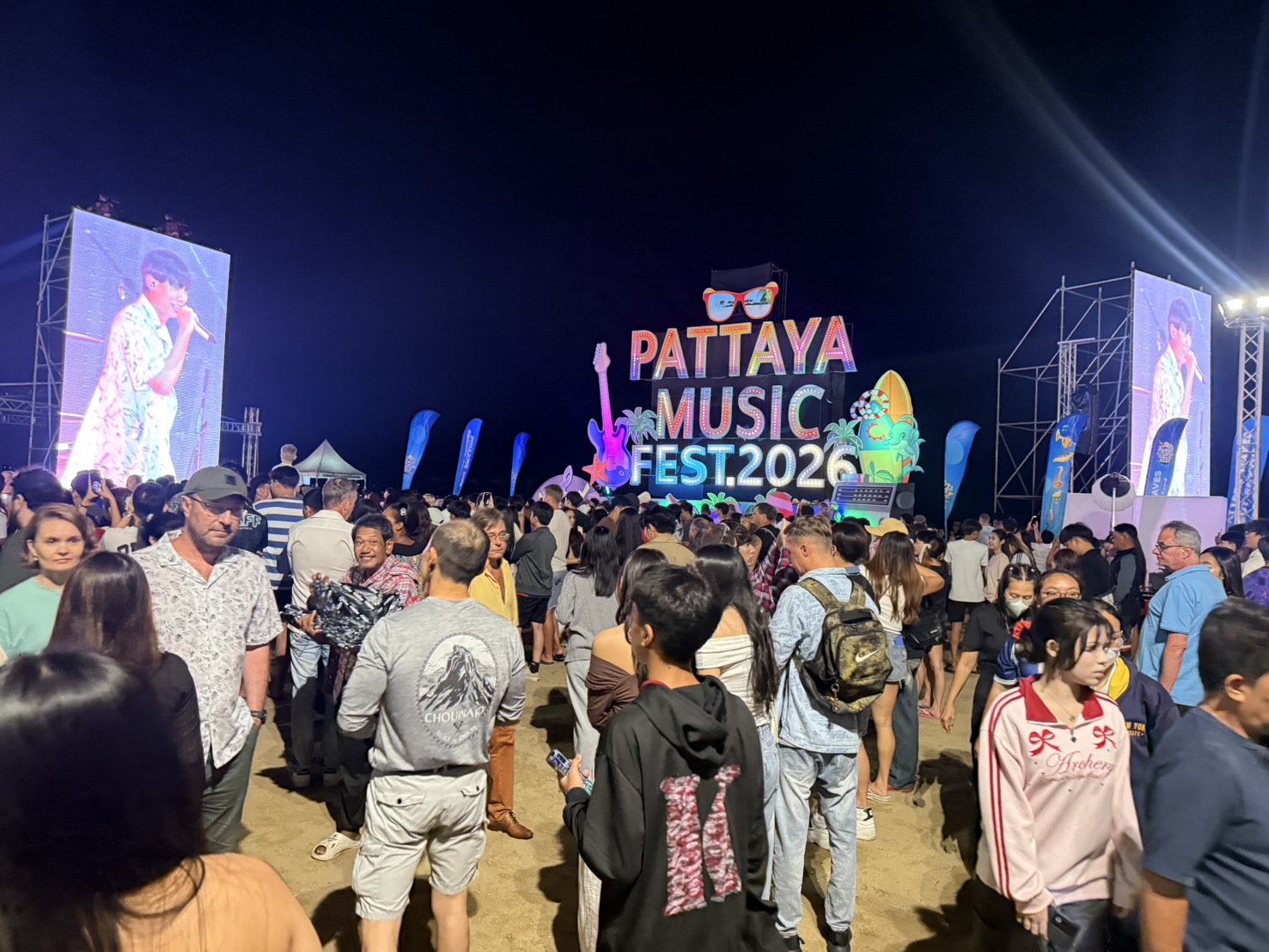 ชลบุรี-ค่ำวันที่ 13 มีนาคม 2569 เป็นการจัดงานคอนเสิร์ตพัทยามิวสิคเฟสติวัล 2026 สัปดดาห์ที่สอง ที่เมืองพัทยาเลือกมาจัดที่บริเวณริมหาดจอมเทียน พบว่ามีความคึกคักตั้งแต่ช่วงค่ำ แฟนคลับทยอยเข้าพื้นที่หน้าเวทีบริเวณชายหาดหน้าเดอะนาว เพื่อร่วมสนุกกันอย่างหนาแน่น