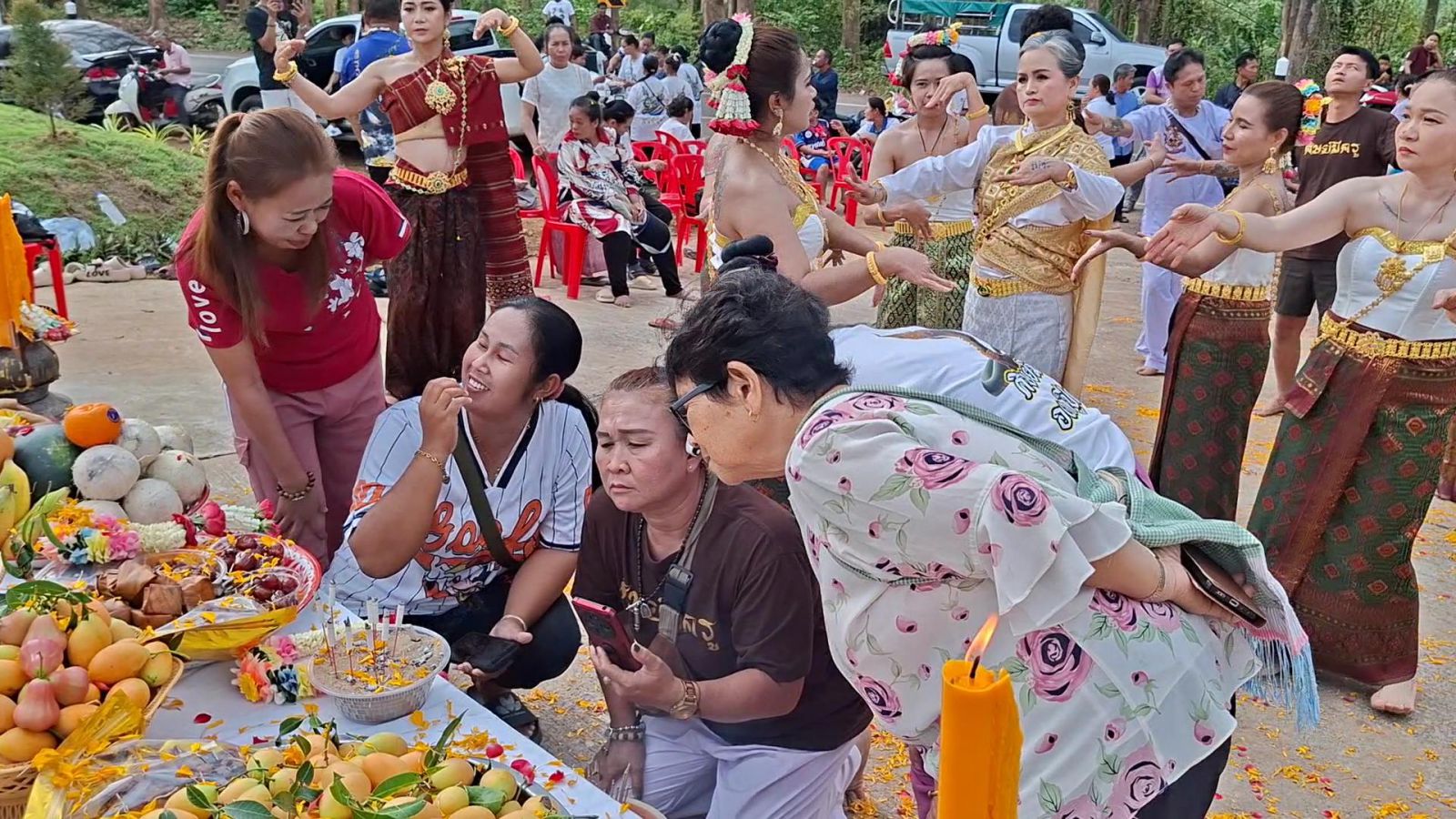 บรรยากาศภายในงานเป็นไปอย่างคึกคัก ชาวบ้านที่มาร่วมพิธีต่างร่วมร่ายรำถวายองค์พญานาคเพื่อความเป็นสิริมงคลแก่ตนเองและครอบครัว เมื่อเสร็จพิธี หลายคนไม่พลาดพากันไปส่อง ธูปเสี่ยงทาย บริเวณหน้าโต๊ะบวงสรวง บางคนหยิบโทรศัพท์มือถือขึ้นมาถ่ายภาพ ขณะที่บางคนจดเลขกันอย่างตั้งใจ