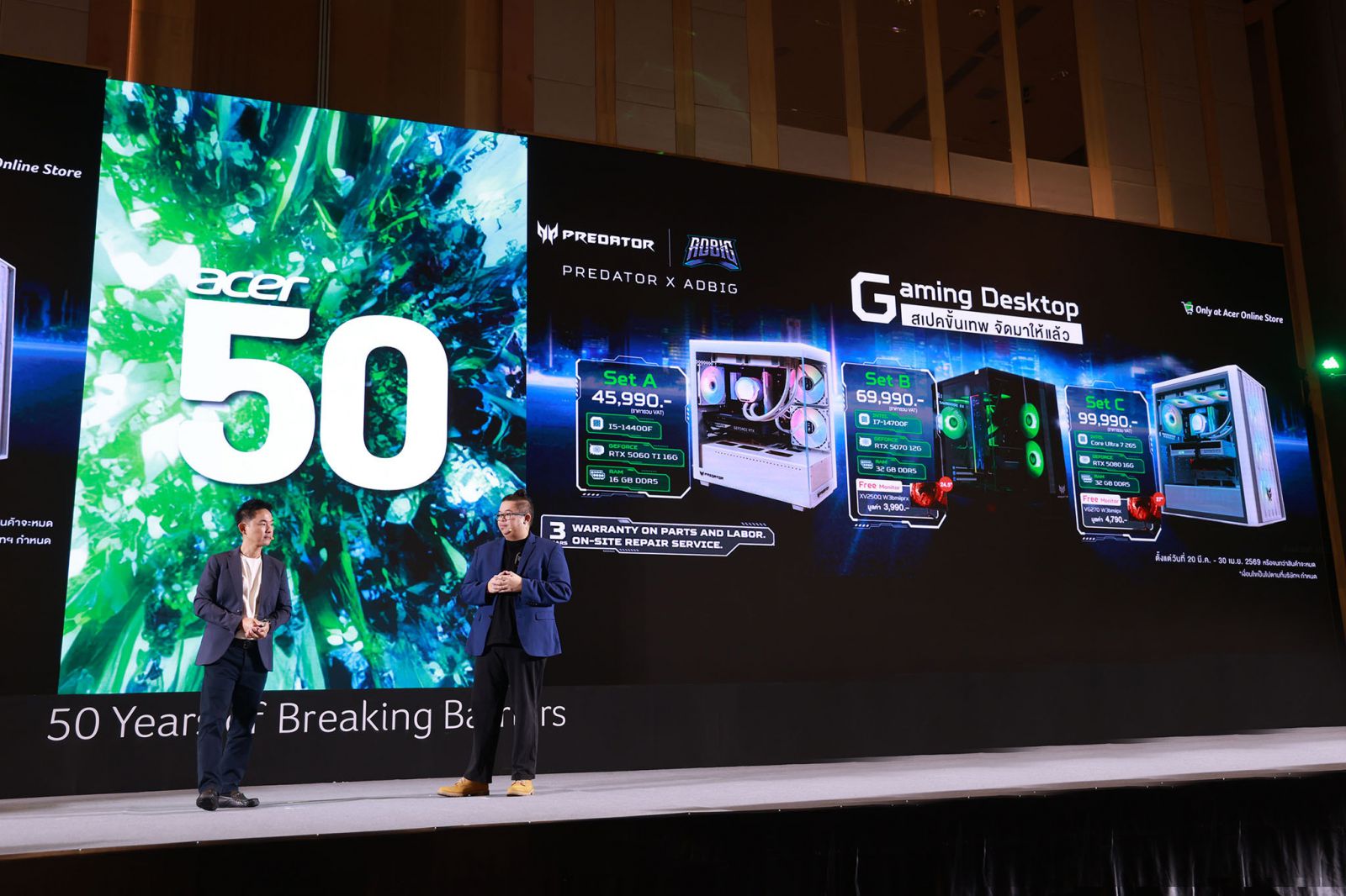อีกหนึ่งไฮไลต์สำคัญของปีนี้ คือโปรเจกต์ Predator x ADBIG ที่เอเซอร์ร่วมมือกับ ADBIG ผู้เชี่ยวชาญด้านคอมพิวเตอร์ประกอบ (Custom PC) เพื่อพัฒนา Custom DIY PC ภายใต้แบรนด์ Predator ที่คัดสรรและออกแบบสเปกของแต่ละรุ่นอย่างพิถีพิถัน เพื่อให้ได้สมดุลด้านประสิทธิภาพที่เหมาะสมกับผู้ใช้งานในทุกระดับ ตั้งแต่ผู้เริ่มต้นไปจนถึงผู้ที่ต้องการพลังประมวลผลระดับสูง พร้อมวางจำหน่าย เฉพาะผ่าน Acer Online Store เท่านั้น เพื่อสร้างประสบการณ์ใหม่ให้กับคอมมูนิตี้เกมเมอร์และผู้ใช้งานสาย DIY พร้อมขยายการเชื่อมต่อแบรนด์กับผู้บริโภครุ่นใหม่มากยิ่งขึ้น