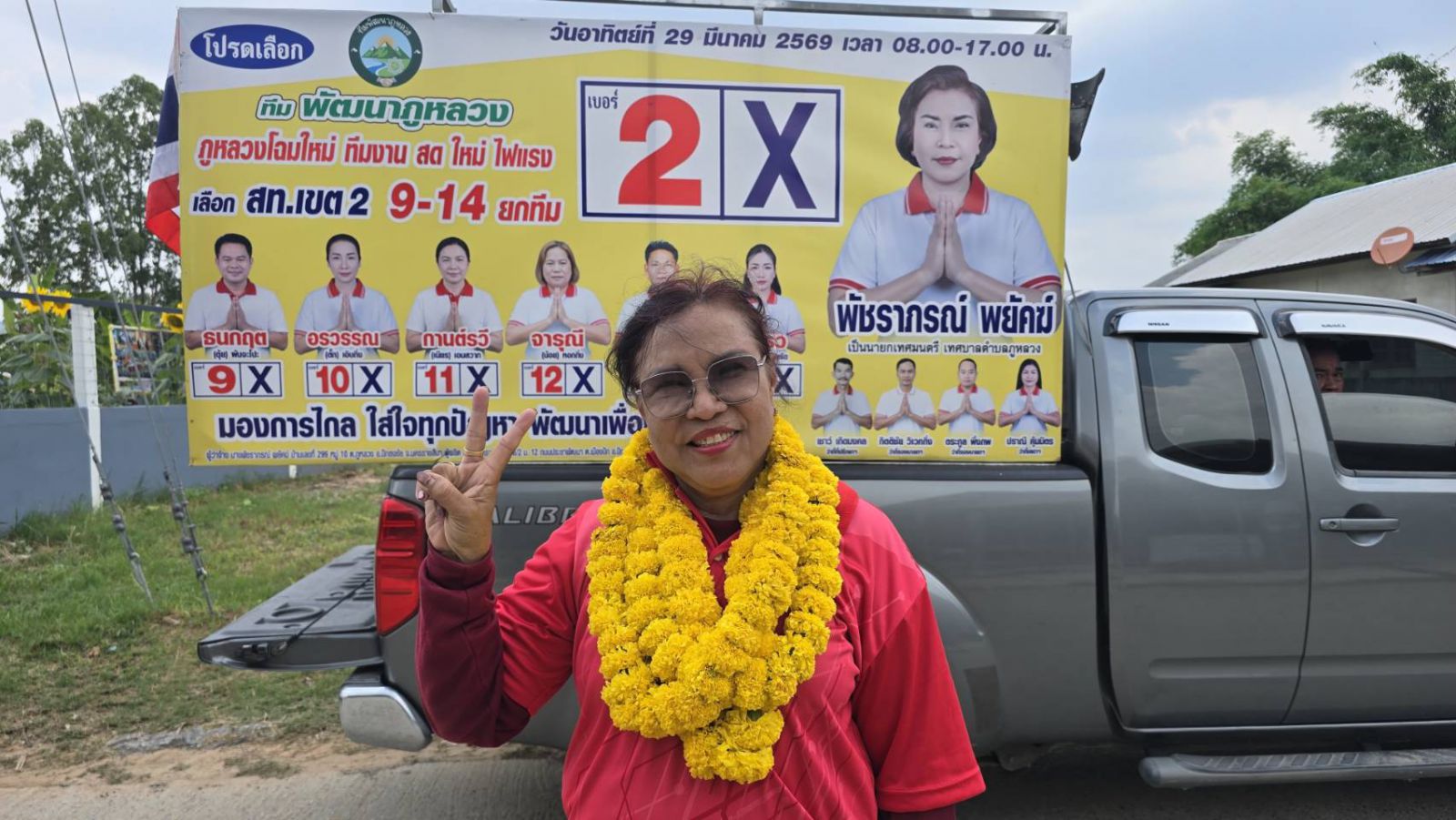 นางพัชราภรณ์ พยัคฆ์ ผู้สมัครนายกเทศมนตรีตำบลภูหลวง หมายเลข 2 ในนามทีมพัฒนาภูหลวง อำเภอปักธงชัย จังหวัดนครราชสีมา พร้อมทีมผู้สมัครสมาชิกสภาเทศบาล (สท.) ลงพื้นที่พบปะประชาชนและขอคะแนนเสียงอย่างต่อเนื่องในพื้นที่ตำบลภูหลวง
