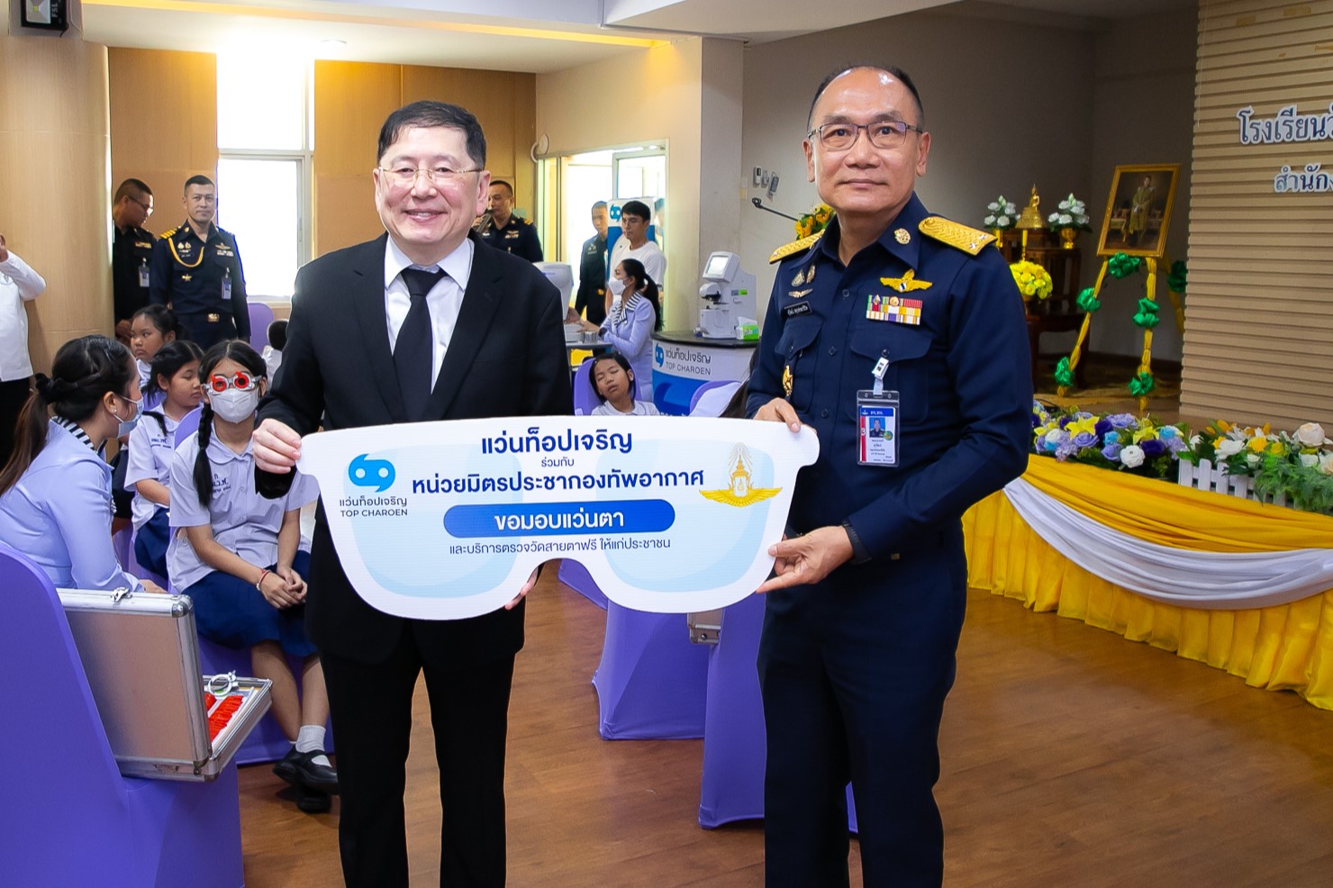 แว่นท็อปเจริญร่วมกับกองทัพอากาศรุก บริการดูแลสายตาแก่นร.-ปชช.ดอนเมือง