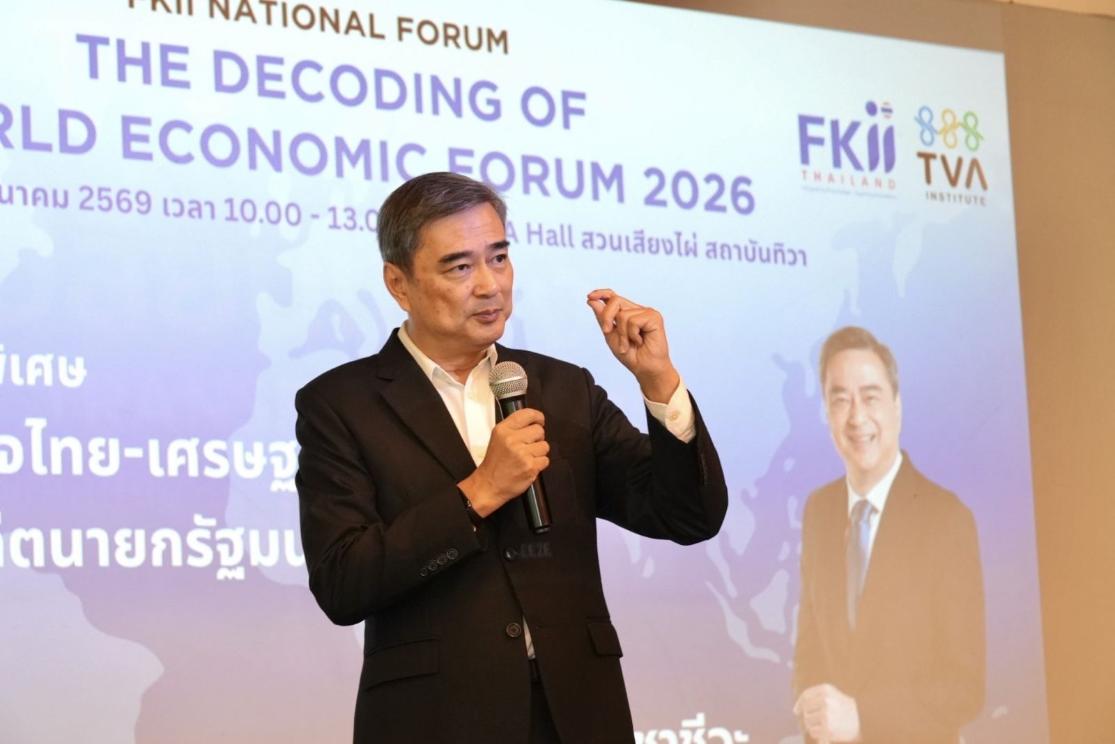 นายอภิสิทธิ์ เวชชาชีวะ อดีตนายกรัฐมนตรี ปาฐกถาพิเศษ“อนาคตโลก อนาคตไทย”โดยชี้ถึง 3 ปัจจัยเปลี่ยนโลก ได้แก่