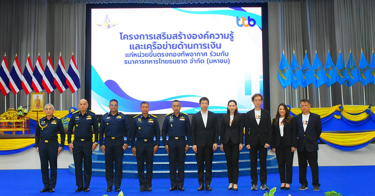 นายจักรพันธ์ จารุธีรศานต์ รองประธานเจ้าหน้าที่บริหาร หัวหน้าบริหารเครือข่ายสาขา ทีทีบี ได้เข้าร่วมพิธีเปิด “โครงการเสริมสร้างองค์ความรู้และเครือข่ายด้านการเงินแก่หน่วยขึ้นตรงกองทัพอากาศ” ซึ่งกองทัพอากาศโดยกรมกำลังพลทหารอากาศจัดขึ้น โดยมีพลอากาศเอก ไวพจน์ เกิงฝาก รองผู้บัญชาการทหารอากาศ เป็นประธาน โครงการดังกล่าวมีวัตถุประสงค์เพื่อให้ความรู้และเสริมสร้างความเข้าใจด้านการบริหารจัดการทางการเงินแก่กำลังพลและผู้แทนหน่วยขึ้นตรงกองทัพอากาศ เพื่อให้ตัวแทนดังกล่าวสามารถนำองค์ความรู้ที่ได้รับไปประยุกต์ใช้และขยายผลการให้ความรู้ด้านการเงินในระดับหน่วยงานได้อย่างมีประสิทธิภาพ โดยเฉพาะการสร้างภูมิคุ้มกันเรื่องหนี้ การจัดลำดับการแก้ไขปัญหาหนี้สินอย่างเป็นระบบให้กับกำลังพลภายในหน่วยงาน เพื่อเสริมสร้างความมั่นคงในชีวิตและพัฒนาศักยภาพกำลังพลให้สามารถพึ่งพาตนเองได้อย่างยั่งยืน ซึ่งสอดคล้องกับพันธกิจของธนาคารที่มุ่งมั่นสร้างชีวิตทางการเงินที่ดีขึ้นให้กับคนไทย