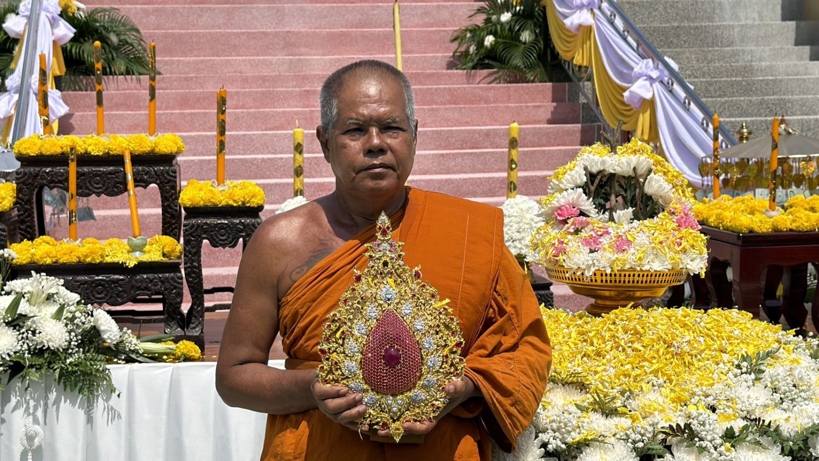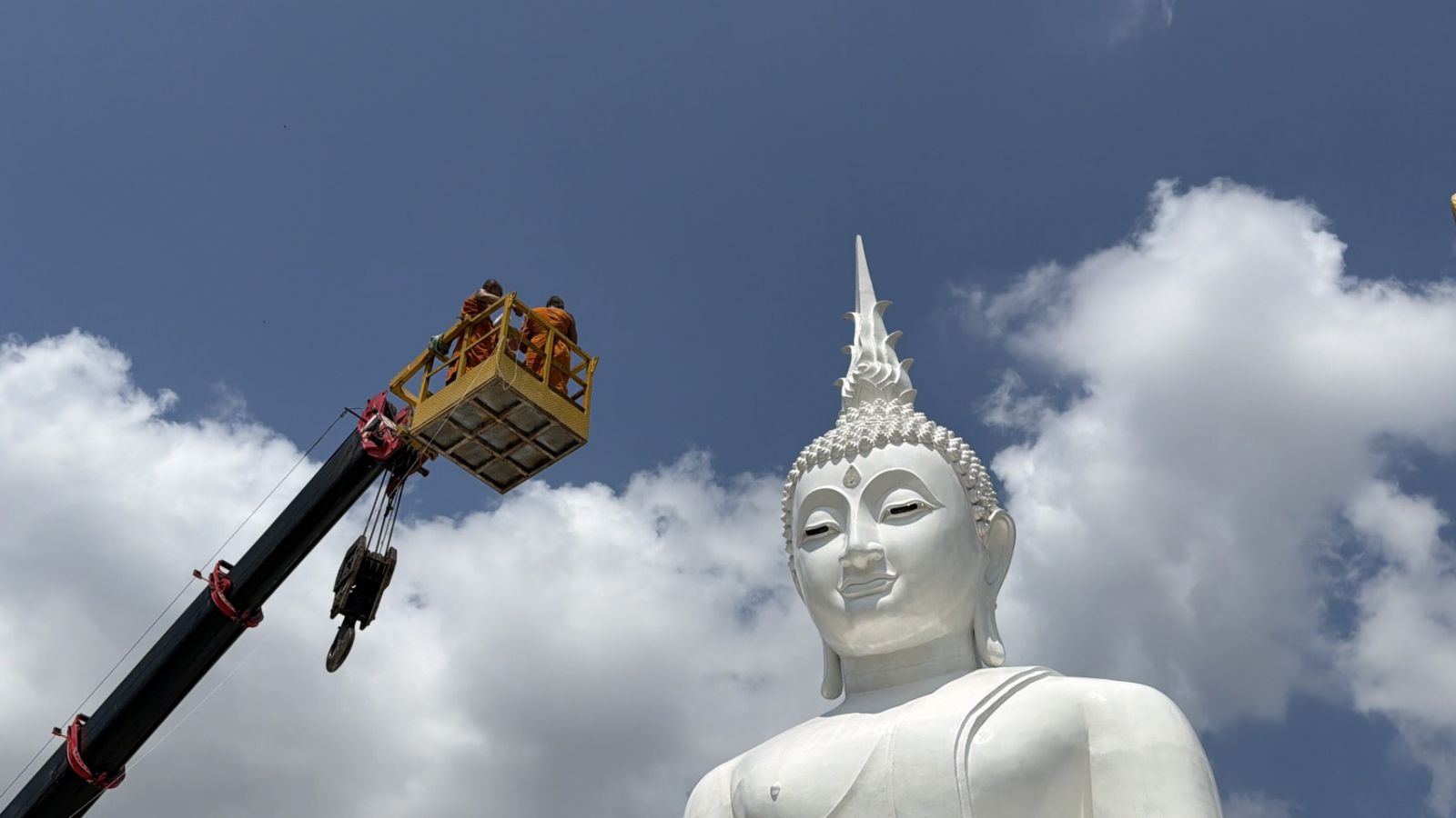 นายายอามอัญเชิญ'อุนาโลม'ประดิษฐาน บนหน้าผากหลวงพ่อใหญ่วัดเนินเนรมิต