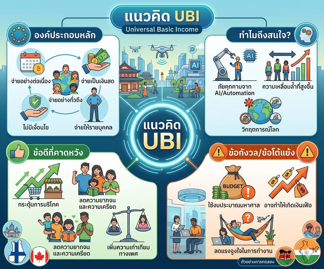 แนวคิด UBI ถูกนำเสนอในฐานะเครื่องมือในการรับมือกับการเปลี่ยนแปลงของตลาดแรงงาน แต่ในอีกมิติหนึ่งกลับถูกตั้งคำถามว่า อาจนำไปสู่การสร้าง “ความพึ่งพิงเชิงโครงสร้าง”