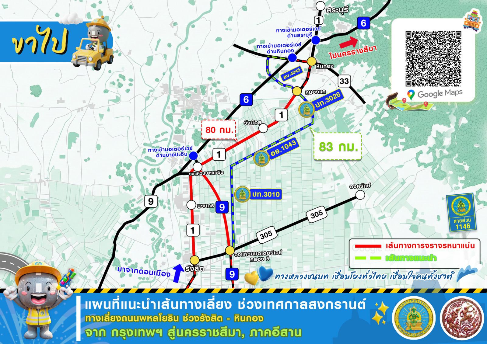 กรุงเทพฯ-กรมทางหลวงชนบท (ทช.) เตรียมความพร้อมอำนวยความสะดวกและปลอดภัยในการเดินทางของประชาชนในช่วงเทศกาลสงกรานต์ 2569 ตามนโยบายของนายพิพัฒน์ รัชกิจประการ รองนายกรัฐมนตรีและรัฐมนตรีว่าการกระทรวงคมนาคม ที่กำชับให้ทุกหน่วยงานในสังกัดบูรณาการการทำงานด้านคมนาคมและเตรียมแผนในการอำนวยความสะดวกอย่างเต็มที่ เพื่อลดอุบัติเหตุจากการคมนาคมอย่างเป็นรูปธรรม ระหว่างวันที่ 10 - 19 เมษายน 2569 ภายใต้หัวข้อ “ออกเวลาไหนก็ถึงเหมือนกัน Smart Travel Songkran 2569”พร้อมแนะนำ 4 เส้นทางเลี่ยงขาออกต่างจังหวัดช่วงเทศกาลสงกรานต์ 2569 เพื่อบรรเทาปริมาณการจราจรบนถนนสายหลัก ช่วยวางแผนการเดินทางให้ประชาชนถึงที่หมายได้อย่างสะดวดปลอดภัยทันเวลา