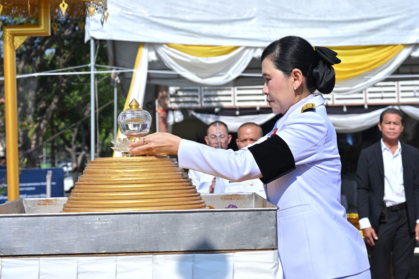 ผู้ว่านครปฐมอัญเชิญพระบรมสารีริกธาตุ ประดิษฐานหน้าองค์พระปฐมเจดีย์