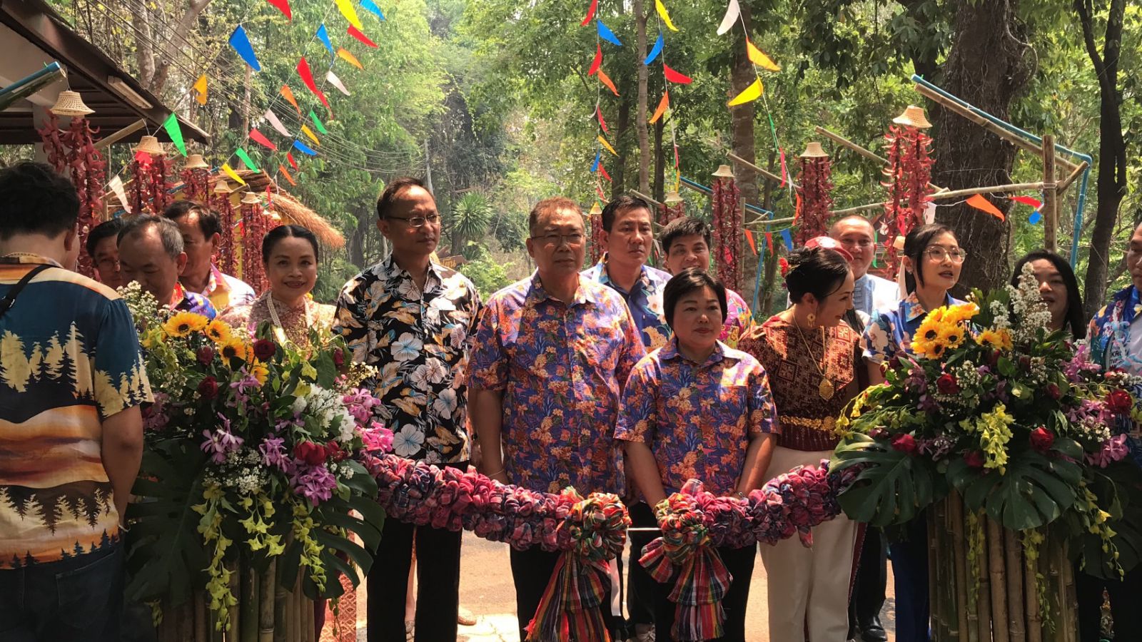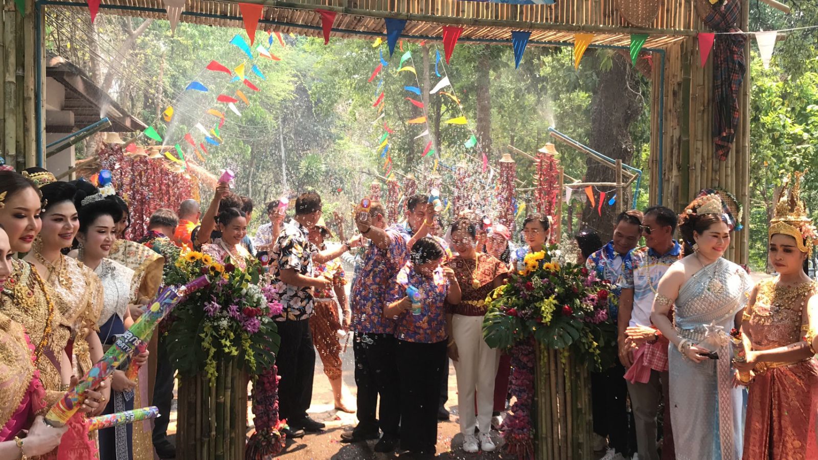 พร้อมด้วยขบวนนางรำในชุดไทยประยุกต์ตามคอนเซปต์ "ห่มสไบใส่ยีนส์" ซึ่งเป็นการนำผ้าสไบพื้นเมืองมาแมตช์กับกางเกงยีนส์ สร้างสีสันและความแปลกใหม่ให้กับเทศกาลสงกรานต์ในปีนี้เป็นจำนวนมากอีกด้วย