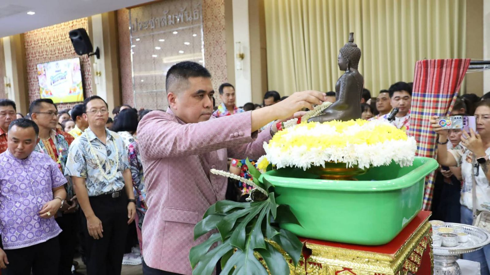 ภายในงานมีหัวหน้าส่วนราชการ ภาคเอกชน และตัวแทนหน่วยงานต่าง ๆ เข้าร่วมอย่างพร้อมเพรียง โดยมีกิจกรรมสำคัญ ได้แก่ การสรงน้ำพระและการรดน้ำขอพรจากผู้ว่าราชการจังหวัดนครราชสีมา เพื่อแสดงถึงความรัก ความเคารพ และความเป็นสิริมงคลในช่วงเทศกาลสงกรานต์ ซึ่งถือเป็นประเพณีอันดีงามของไทยที่สืบทอดกันมาอย่างยาวนาน