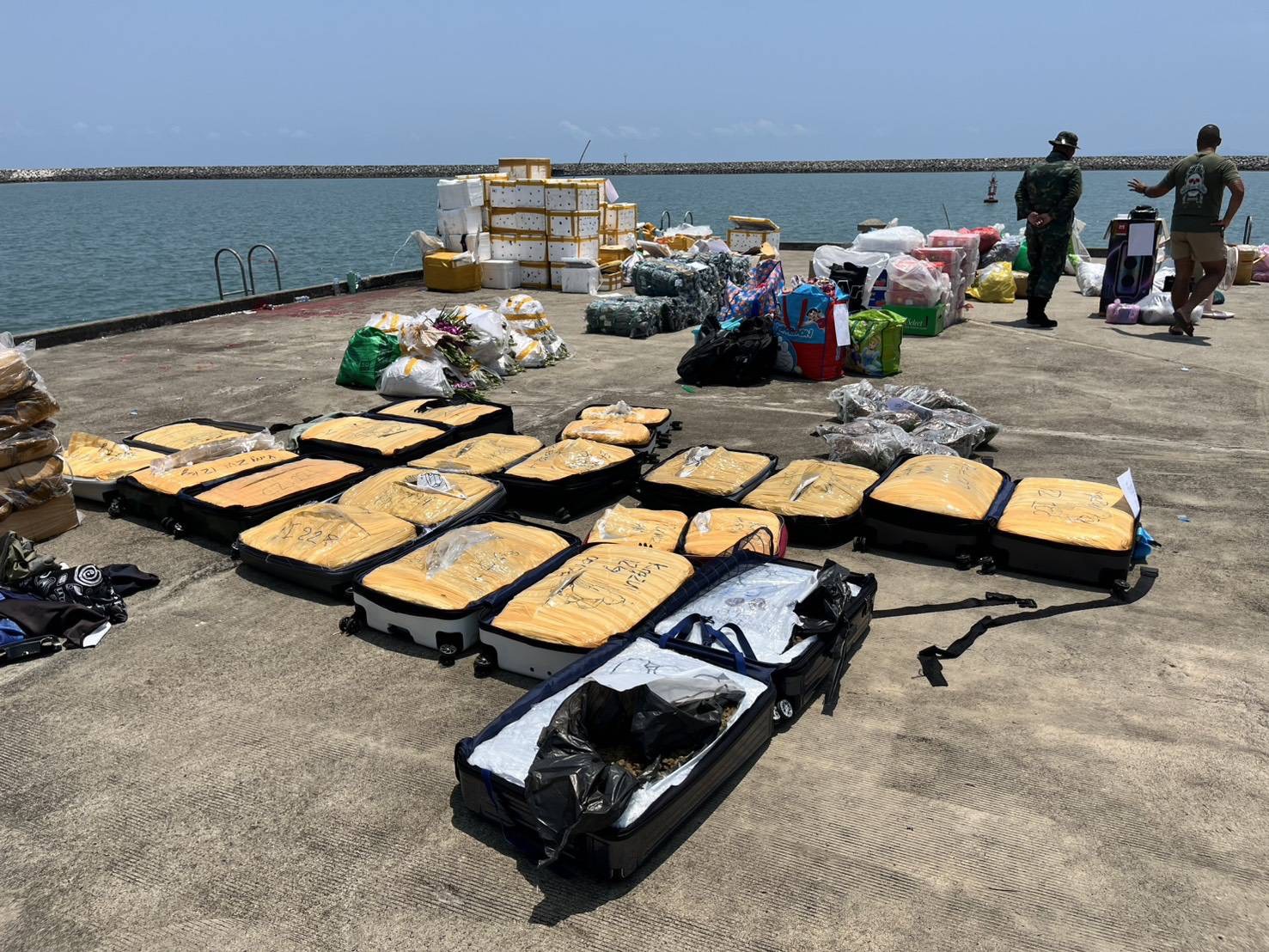 จากการตรวจสอบพบช่อดอกกัญชาอบแห้งบรรจุในกระเป๋าเดินทางจำนวน 11 ใบ ซุกซ่อนอยู่ใต้ท้องเรือ น้ำหนักรวมประมาณ 212 กิโลกรัม คิดเป็นมูลค่าหลายล้านบาท นอกจากนี้ยังพบสินค้าอุปโภคบริโภคประเภทอาหารทะเลสดและเนื้อสัตว์ ซึ่งเตรียมลักลอบส่งออกไปยังประเทศกัมพูชา โดยไม่ผ่านกระบวนการตามกฎหมาย