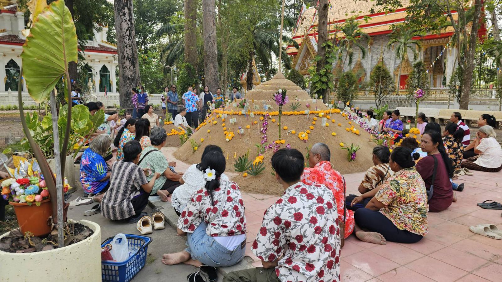 "หลังจากนั้นเราจะมีพิธีที่เรียกว่า 'บวชพระเจดีย์ทราย' โดยมีการเจริญพระพุทธมนต์ และเวียนเทียนประทักษิณาวัตร (เวียนขวา) รอบองค์เจดีย์ทรายจำนวน 3 รอบ เพื่อเป็นการเฉลิมฉลอง ส่วนในช่วงบ่ายของวันนี้ก็จะมีการจัดพิธีสรงน้ำพระสงฆ์ และรดน้ำขอพรผู้สูงอายุตามธรรมเนียมอันดีงามต่อไป" นายจำนง กล่าว