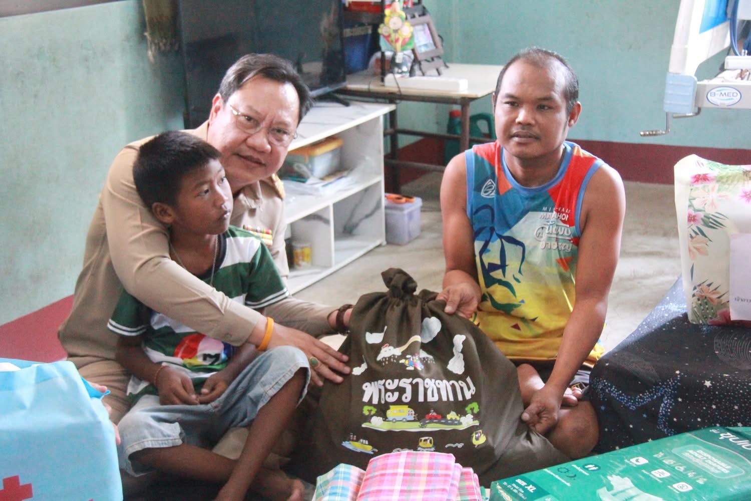 โอกาสนี้ รองผู้ว่าราชการจังหวัดสุราษฎร์ธานี และคณะ ได้มอบถุงยังชีพพระราชทาน และสิ่งของอุปโภคบริโภค สิ่งของเครื่องใช้ที่จำเป็นต่อการดำรงชีพแก่ผู้ป่วยทั้ง 3 ราย พร้อมกับกล่าวให้กำลังใจครอบครัวผู้ป่วย ขอให้มีความเข้มแข็งในการดำเนินชีวิต และปฏิบัติตนเป็นคนดีของสังคม.