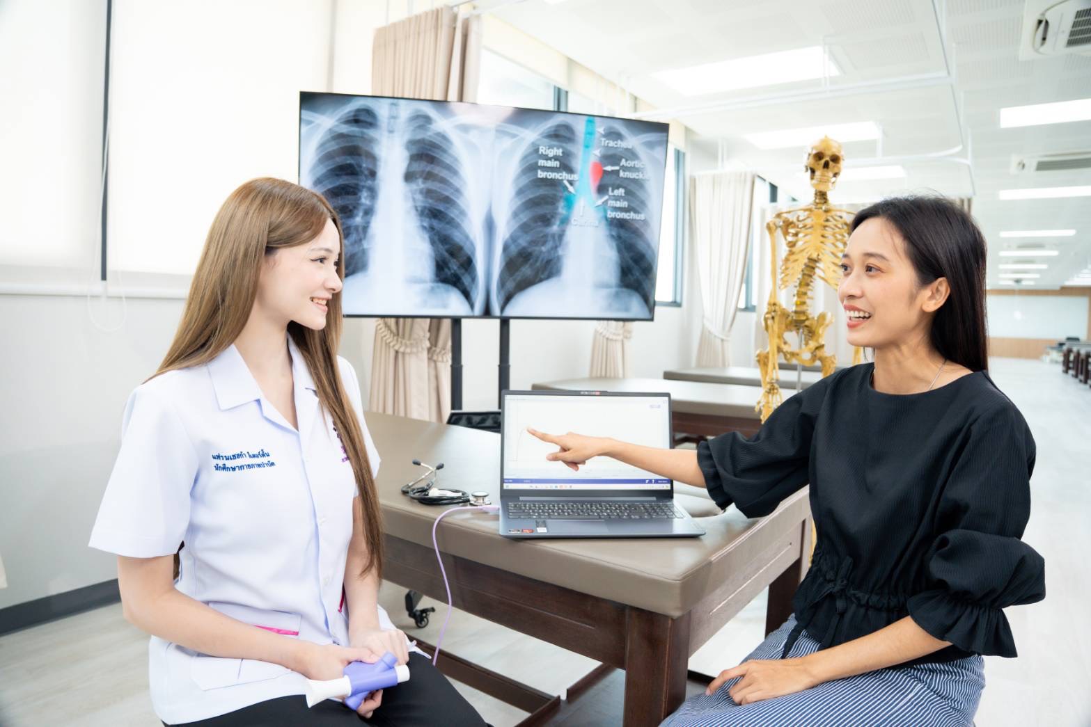 “จุดเด่นของ DPU คือ เราไม่ได้ผลิตเพียงนักกายภาพบำบัด แต่ยังสร้างนักกายภาพบำบัดที่คิดในเชิงธุรกิจและการสร้างสรรค์นวัตกรรมการดูแลรักษาและพัฒนาระบบสุขภาพให้ดีขึ้น โดยมี ‘DPU Relieve คลินิกกายภาพบำบัด’ ซึ่งเป็นคลินิกกายภาพบำบัดต้นแบบที่จัดตั้งขึ้นภายในมหาวิทยาลัย เปิดให้บริการแก่ประชาชนทั่วไป ภายใต้การดูแลของอาจารย์ผู้เชี่ยวชาญ ให้นักศึกษาได้เรียนรู้จากสถานการณ์จริง ด้วยอุปกรณ์การเรียนและเครื่องมือทางกายภาพบำบัดที่ทันสมัย ตั้งแต่พื้นฐานวิชาชีพไปจนถึงการออกแบบบริการสุขภาพ การสร้างแบรนด์ และการบริหารคลินิก ซึ่งเป็นทักษะสำคัญในยุคปัจจุบัน พร้อมทีมคณาจารย์ผู้เชี่ยวชาญที่มีประสบการณ์ทั้งด้านการสอนและการปฏิบัติงานจริงเฉพาะทางครบทั้ง 5 ด้านตามมาตรฐานวิชาชีพ นอกจากนี้ยังมีเครือข่ายความร่วมมือกับสถานพยาบาลชั้นนำทั่วประเทศกว่า 50 แห่ง เพื่อรองรับการฝึกปฏิบัติงาน และเสริมสร้างประสบการณ์การเรียนรู้ที่หลากหลายให้นักศึกษา” ดร.กภ.เบญจมาภรณ์ กล่าว