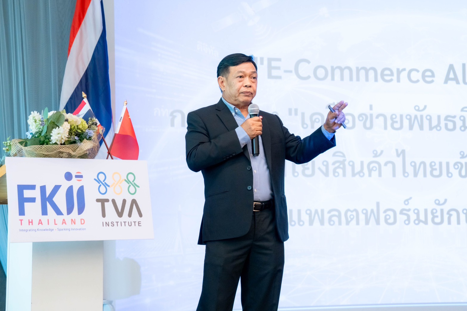 นายอลงกรณ์ พลบุตร ประธานสถาบัน เอฟเคไอไอ.(FKI Thailand)ชี้ถึงสถานการณ์เศรษฐกิจไทยที่กำลังเผชิญปัญหาเศรษฐกิจโตต่ำที่สุดในอาเซียน และการส่งออกแบบดั้งเดิมที่กำลังสูญเสียขีดความสามารถในการแข่งขัน คาดว่าจะเติบโต0ปีนี้จะเติบโต0-2% ด้วยมูลค่าส่งออกต่ำกว่า12ล้านล้านบาทเอฟเคไอไอ.และสถาบันทิวาจึงริเริ่มจัดตั้งเครือข่ายพันธมิตรอีคอมเมิร์ซ(FKII-TVA E-Commerce Alliance)ภายใต้โมเดลใหม่คือการค้าอีคอมเมิร์ซข้ามพรมแดน(CBEC:Cross-Border E-Commerce)ซึ่งมีมูลค่าตลาดโลกสูงถึง 250 ล้านล้านบาทโดยจะเป็นเครื่องยนต์สร้างรายได้ใหม่ให้ประเทศ และทุกภาคส่วนต้องร่วมมือกันกอบกู้วิกฤตเศรษฐกิจของประเทศ
